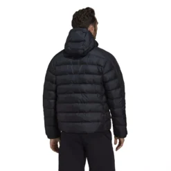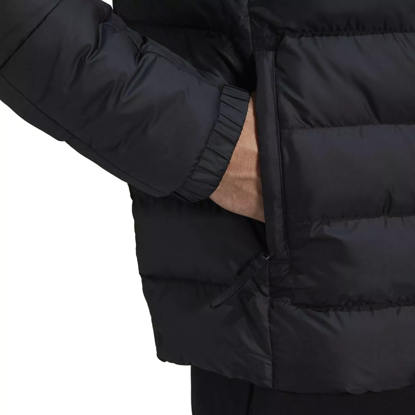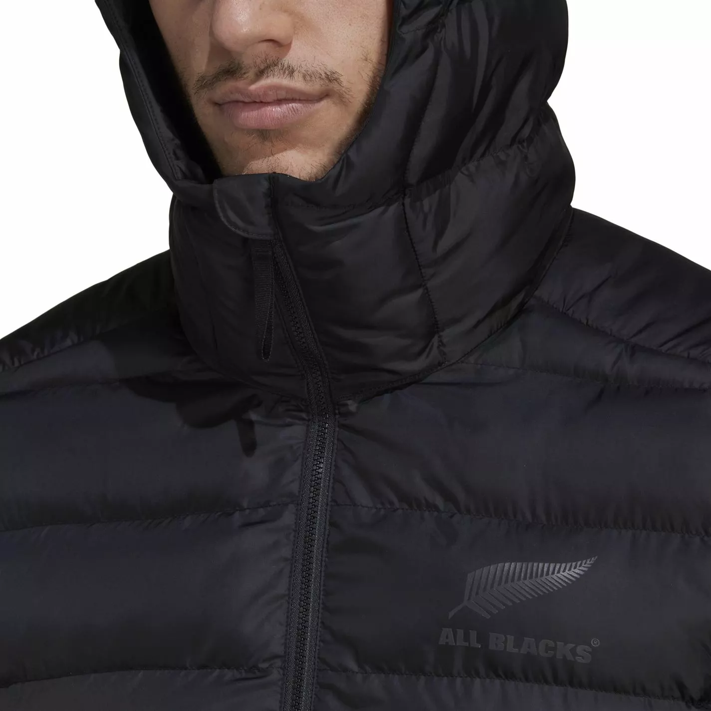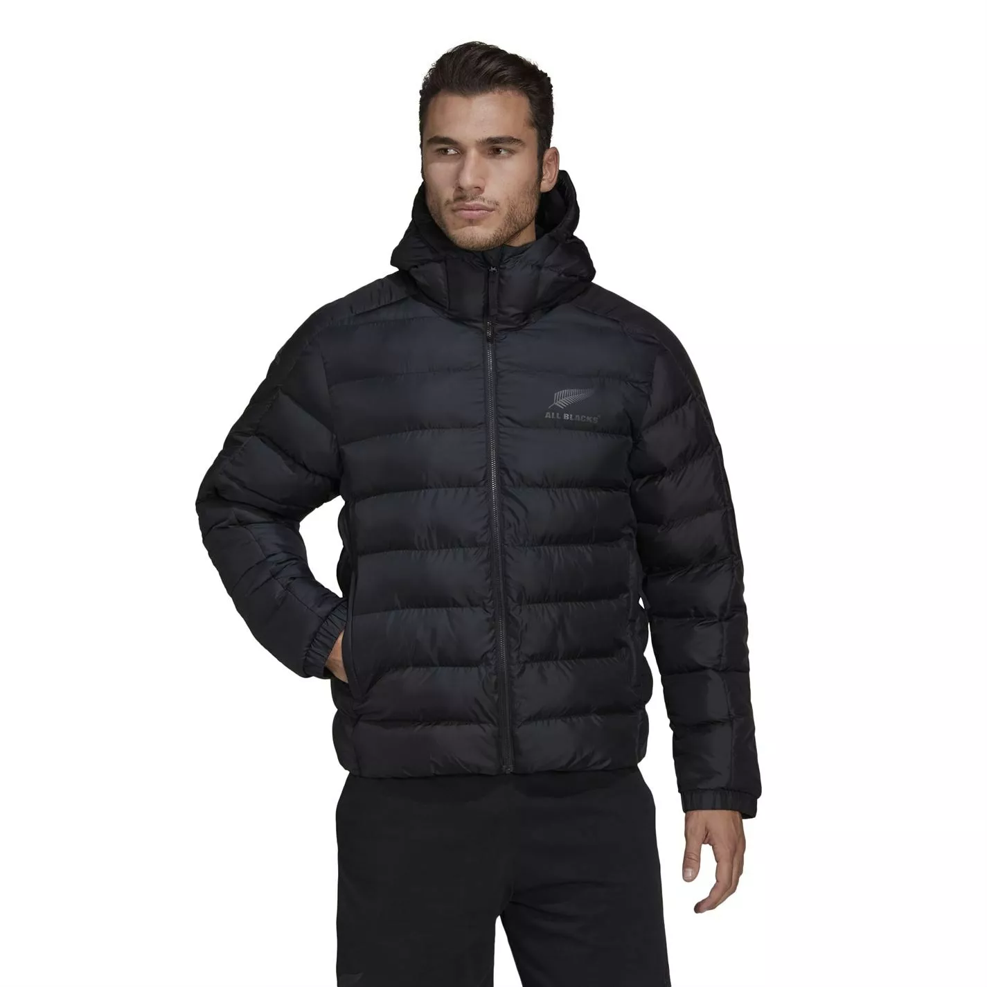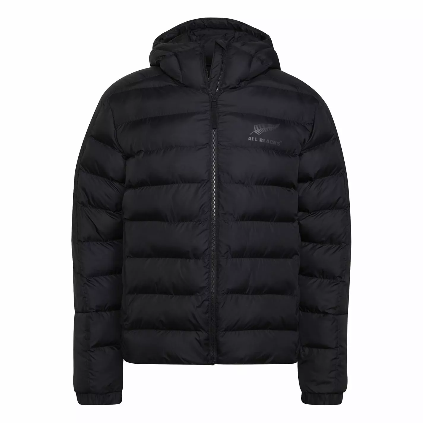 This All Blacks jacket allows you to showcase your support for the New Zealand rugby team in style and benefits from being crafted with insulated padding to deliver lightweight warmth, while the hood and elasticated cuffs help protect you from the elements. The silver fern on the chest shows exactly where your heart belongs and the jacket has been crafted with front pockets and a central zip closure. 100% Recycled polyester, Machine washable.