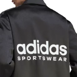 Designed as part of the adidas Sportswear collection offering sports-inspired designs, this Coach Jacket nods to the brands deep routed heritage while adding a casual touch perfect for versatile styling. Crafted from a soft nylon fabrication cut in a regular fit silhouette, this piece is defined with a sleek block colourway while the signature 3-stripes accented down the length of the sleeves provide instant brand recognition. Styled with a pointed collar framing the central button fastening, this coach jacket offers pull cords to the hem for a structured fit while two pockets to the sides complete the look. Signed off with an adidas branded logo printed to the chest, this piece is characterised with a large adidas Sportswear graphic print to the rear for an eye-catching aesthetic. Fronted with Jenna Ortega as the face, this campaign aims to get people expressing their passions through their clothing meaning this garment could be styled laid-back with joggers or dressed up with wide leg denim jeans.