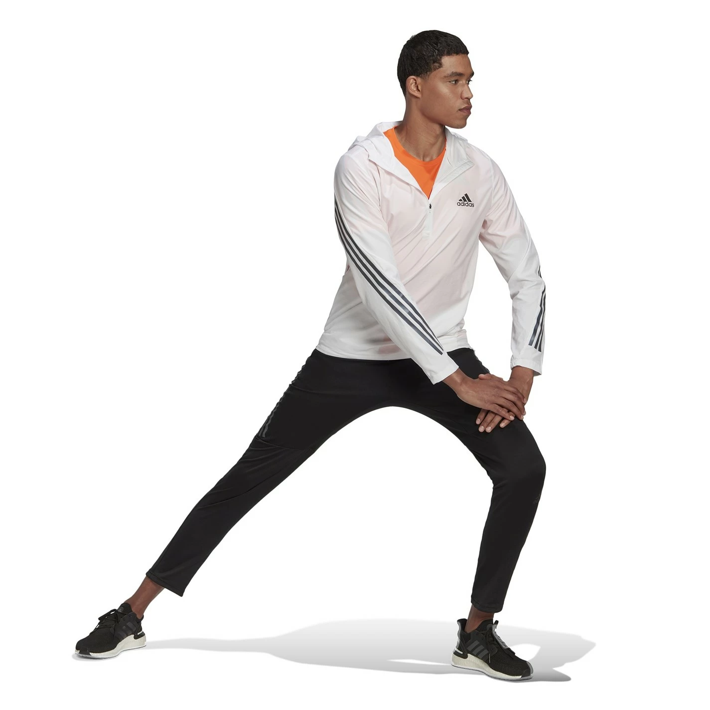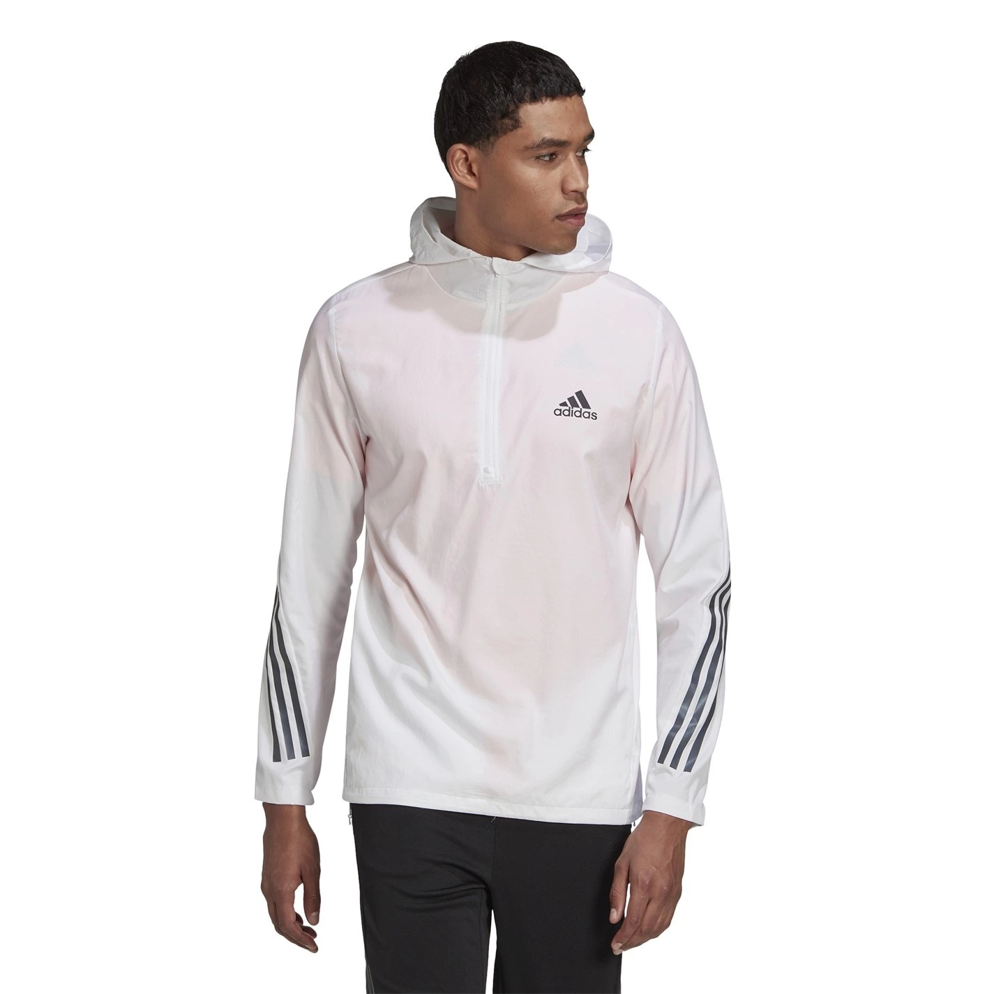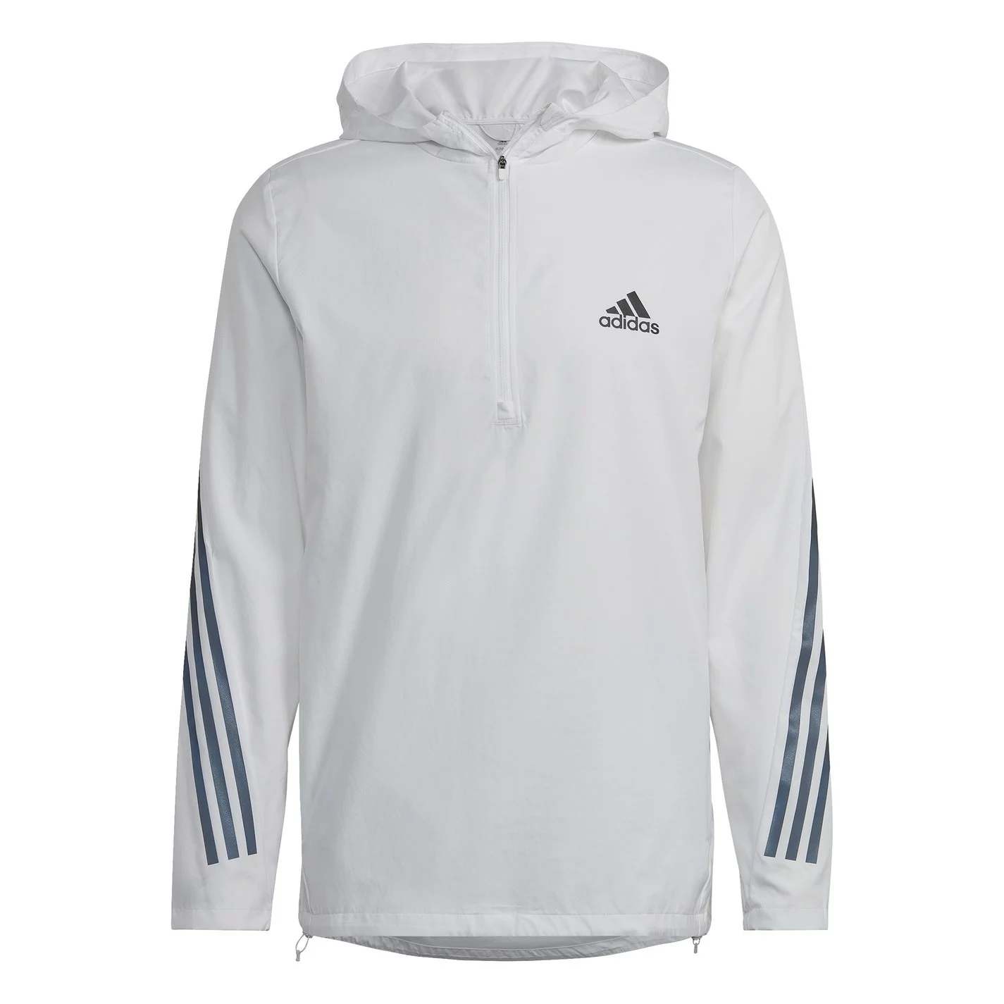 This adidas Run Icons Jacket is crafted with half zip fastening and long sleeves for a secure fit. It features a hooded neckline for a classic look and is a lightweight construction. This jacket is a solid colouring throughout designed with the iconic three stripes and is complete with adidas branding.