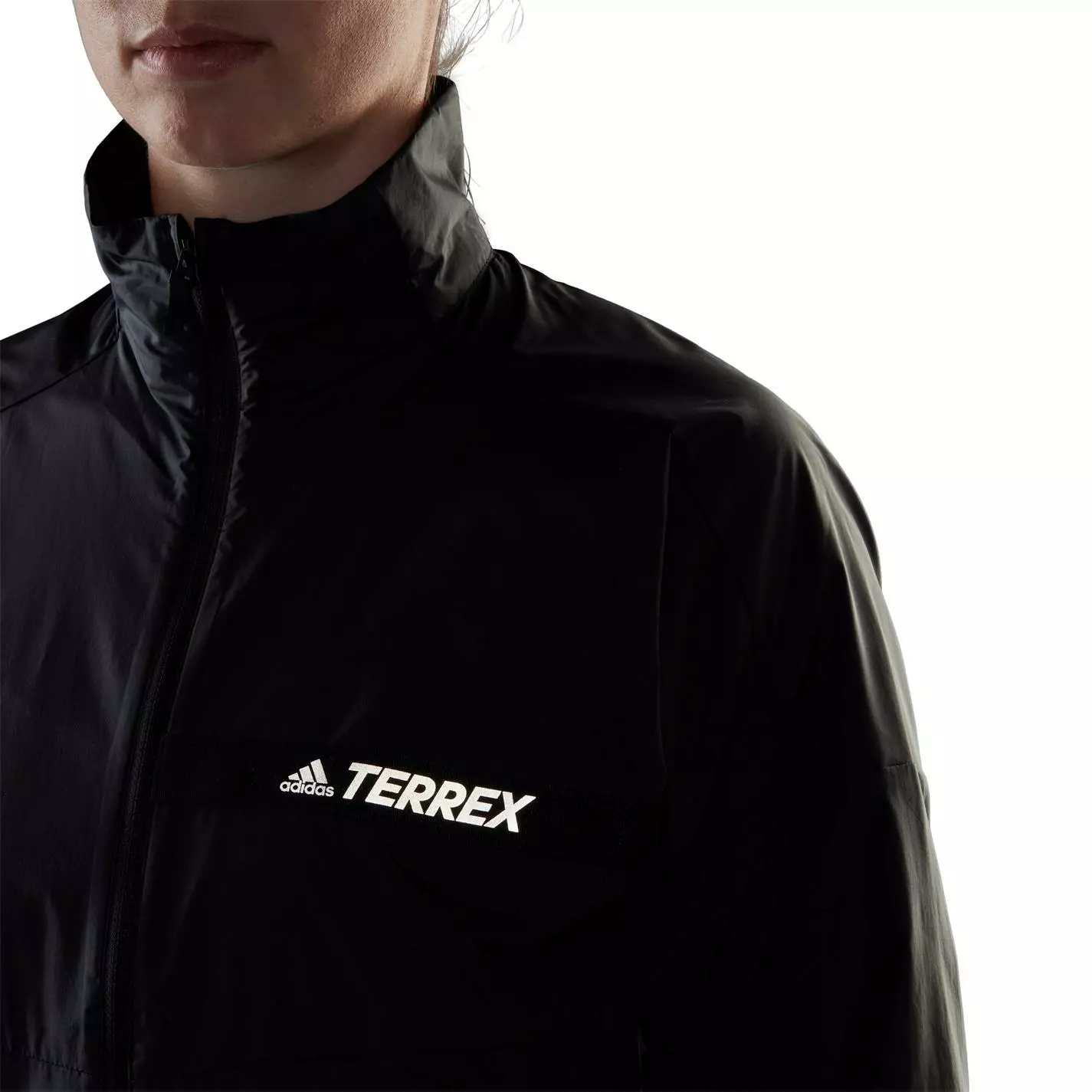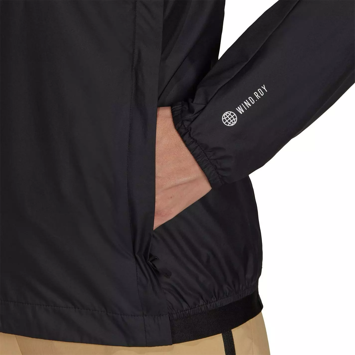 Extend your range without loading down your pack. This adidas Terrex outdoor jacket is a lightweight layer that lets you push into the alpine or cover up as the weather changes. WIND.RDY blocks the wind and repels light showers to keep you warm and dry on the trail. It’s cut with backpack-friendly seams and extra coverage at the back hem. Mesh underarm vents keep the air flowing during strenuous efforts, and it stows into a pocket for easy storage in a trail vest or pack.