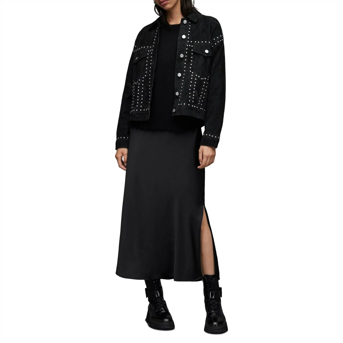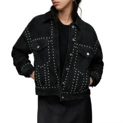 All Saints Bella Stud Trucker Jacket Womens