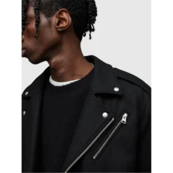 Bring a distinctive edge to your outerwear collection with this biker jacket from AllSaints. Crafted from a warming wool blend, it is insulated, regular in length and has a zip-up closure that’s perfect to grab and go.
