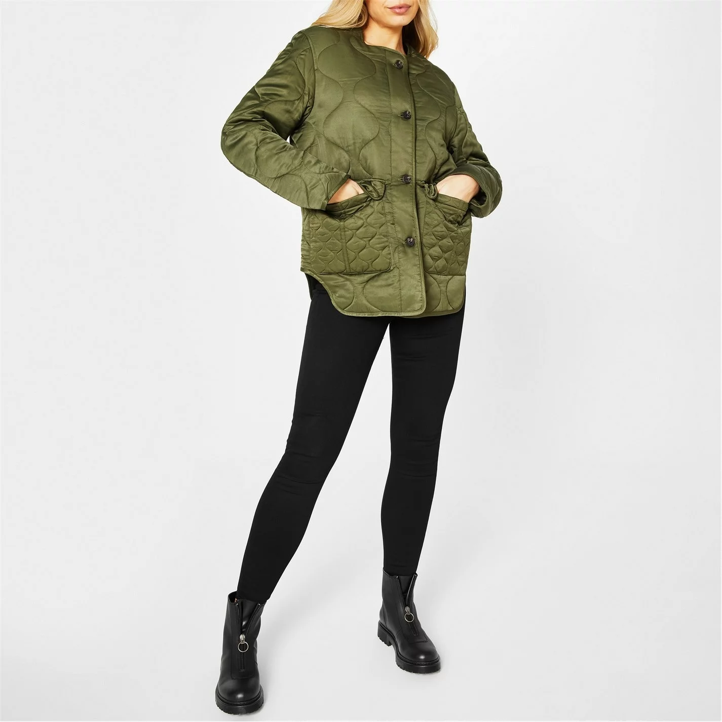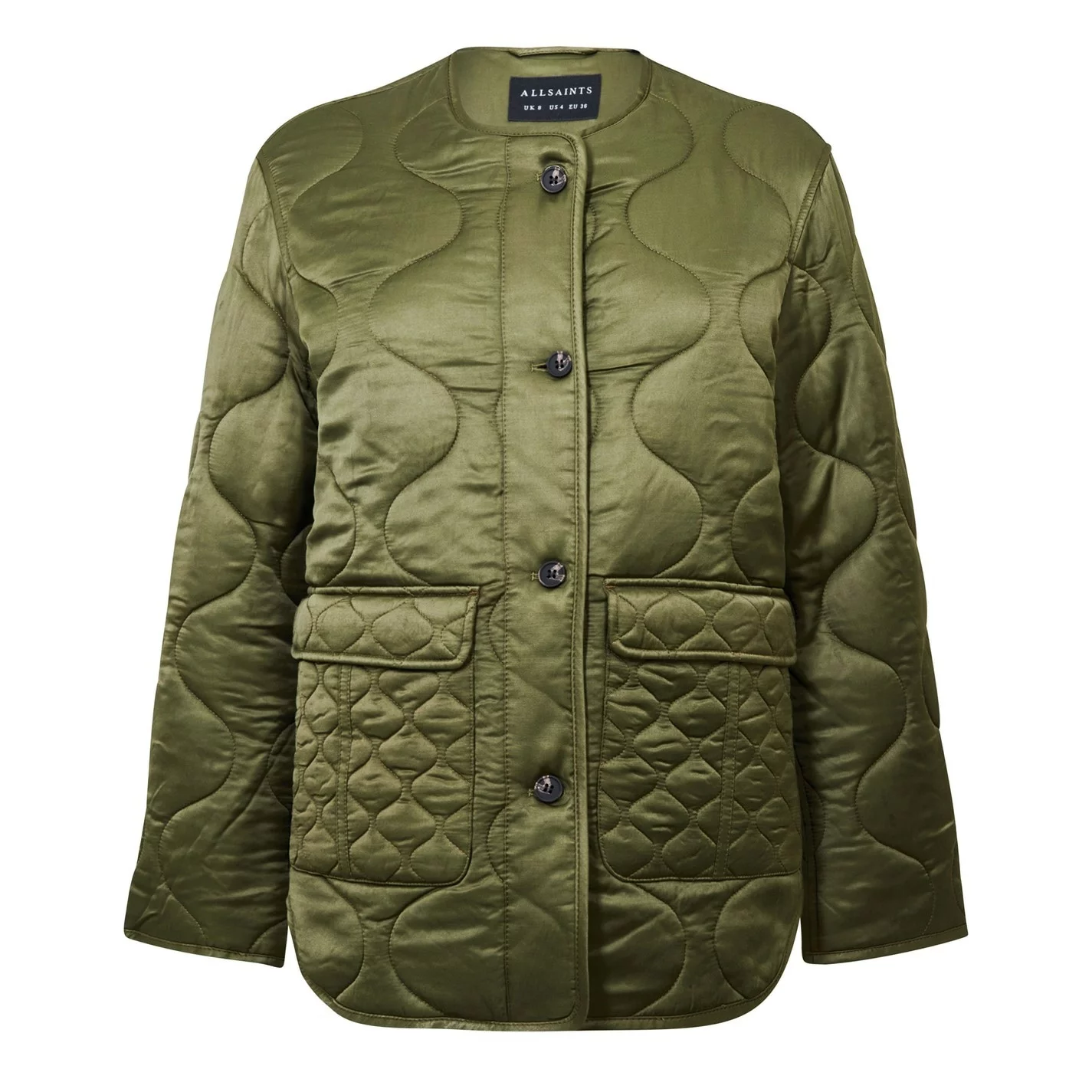 Introducing the new staple to your wardrobe, the Foxi Quilted Jacket brought to you by All Saints. Featuring a relaxed fit design in a lightweight quilting, the piece is designed with a round neck and front button closure. Crafted in a viscose shell in a tonal colour throughout, the Foxi Quilted Jacket is finished with twin pockets to the front for all the essentials. Composition: Shell: 100% Viscose. Lining: 56% Viscose, 44% Cotton. Filling: 100% Recycled Polyester. Care: Dry clean only.
