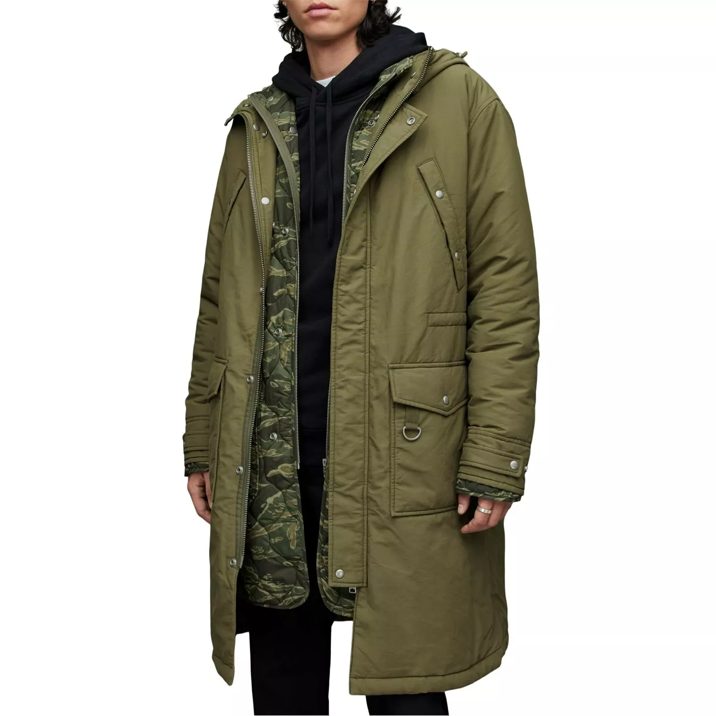 Combining practicality with timeless style, when inclement weather hits reach for this parka by AllSaints. Keeping you warm with a separate camo lining, it is cut with a longline hem that elongates your form and utilises press studs and a zip for the perfect grab-and-go.