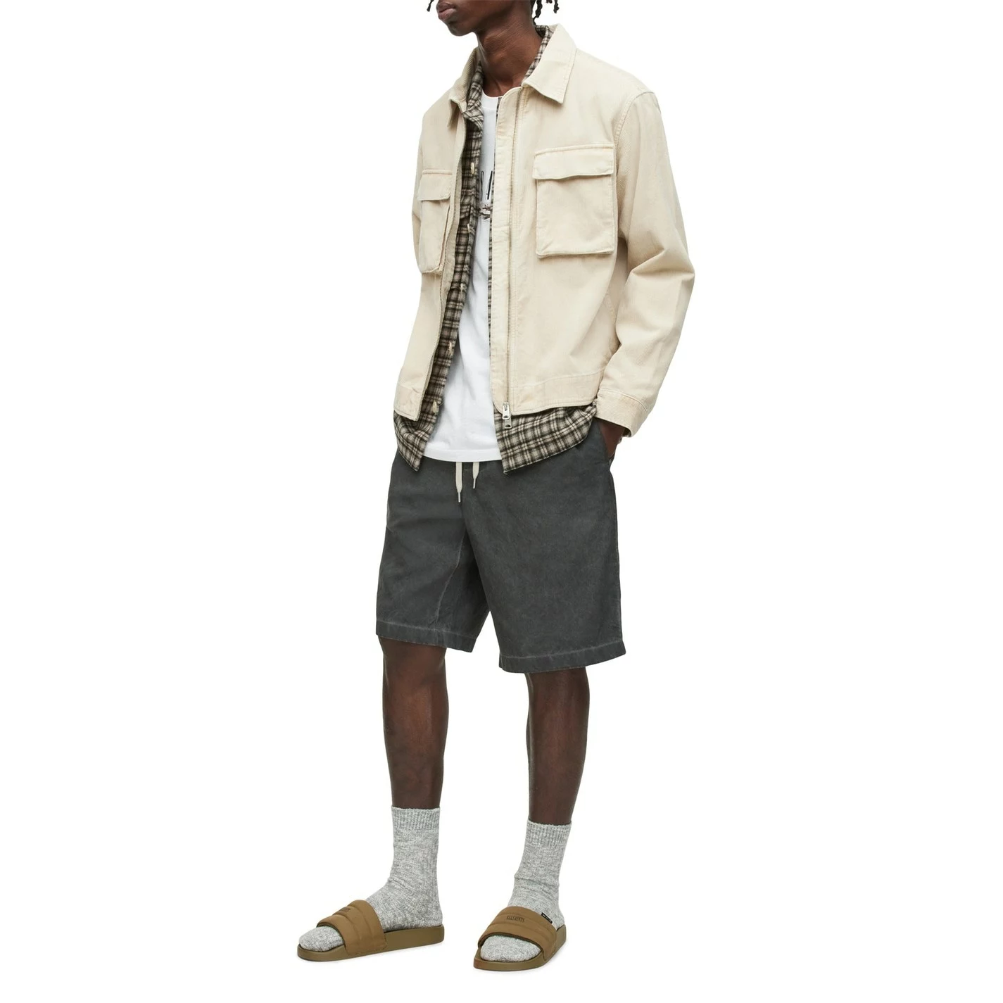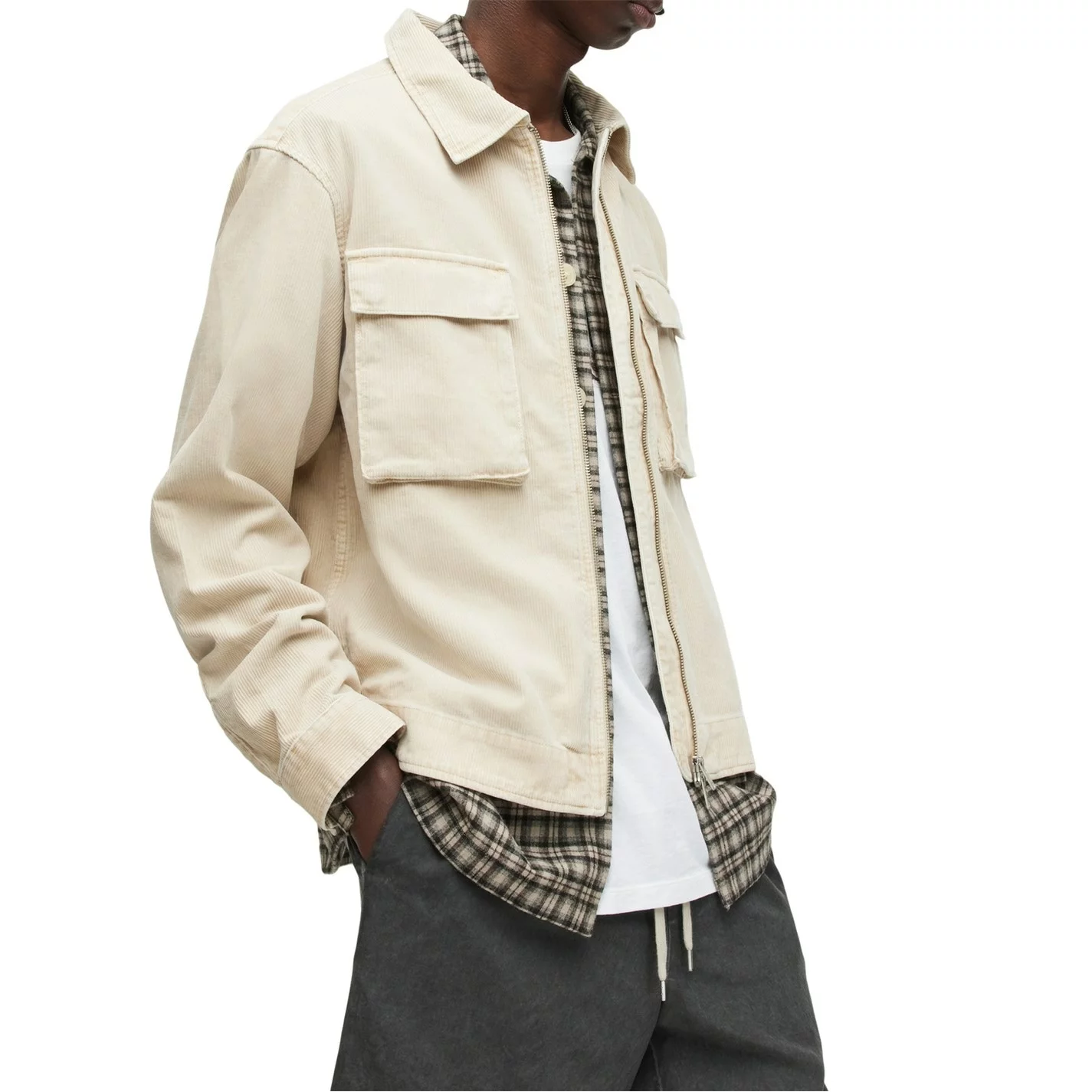 A vintage style to add to your outwear, the Clifton Jacket by All Saints, crafted from organic cotton cut in a regular relaxed fit, perfect for casual wear. The jacket is shaped to a vintage-inspired cropped silhouette, featuring long sleeves, full-zip closure, classic collar, chest pockets with snap-button closure and button cuffs. The look is complete with signature All Saints branded metal clip on pocket flap.