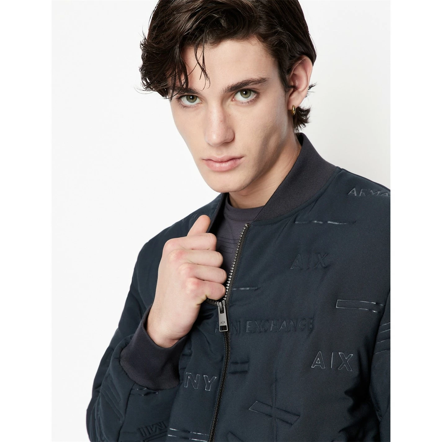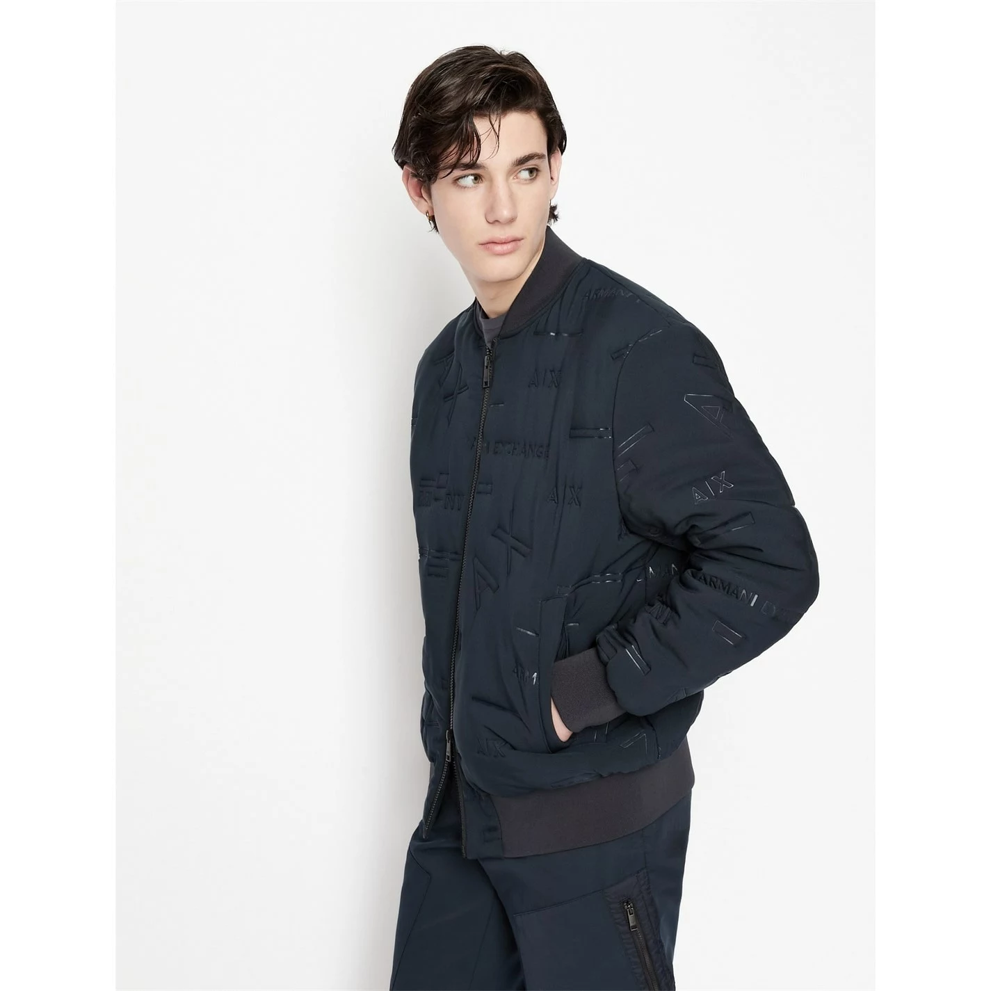 Enhance your collection with this Armani Exchange AOP Bomber Jacket. Constructed with full zip fastening and long sleeves for a secure fit, it features comfortable ribbed trims and two hand pockets for a classic look. This jacket is an all over print design with a signature logo and is complete with Armani Exchange branding.