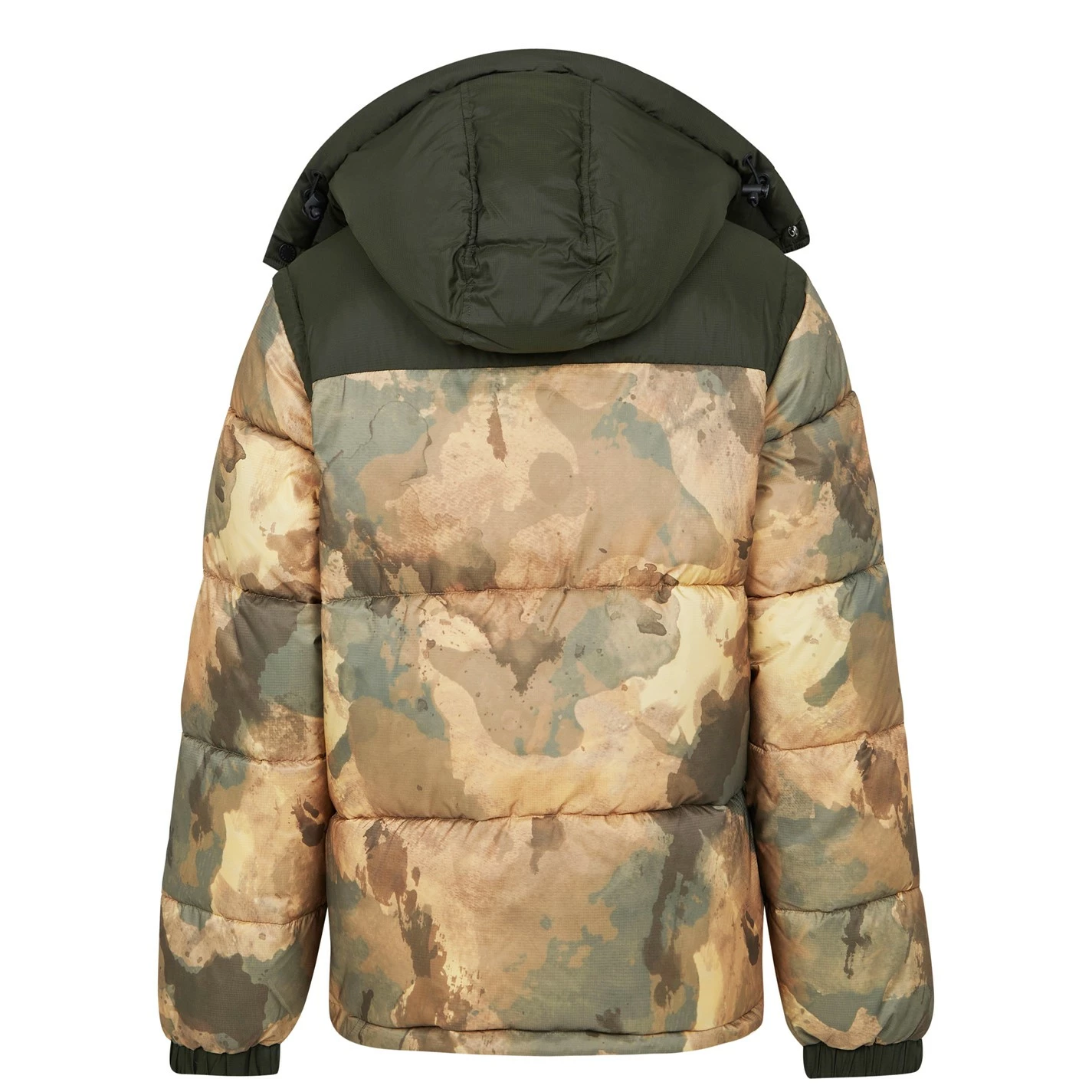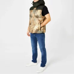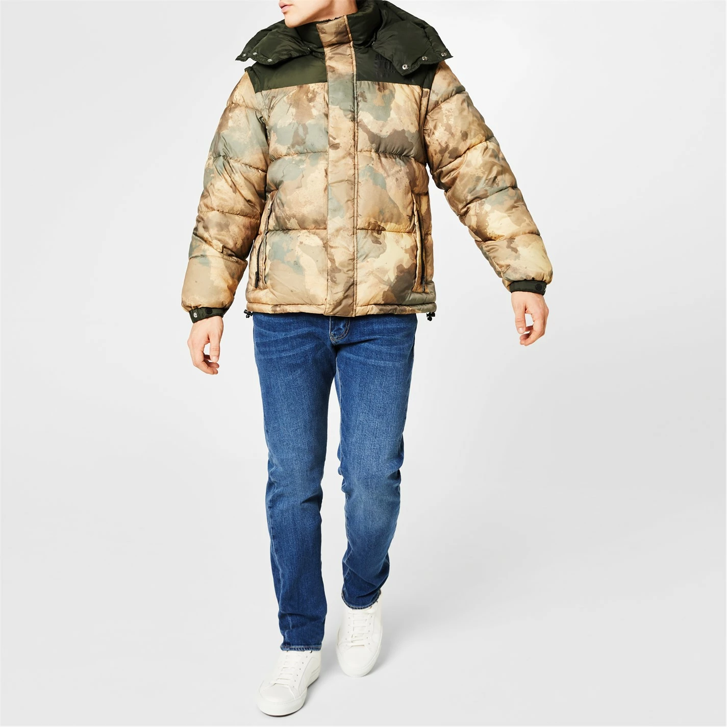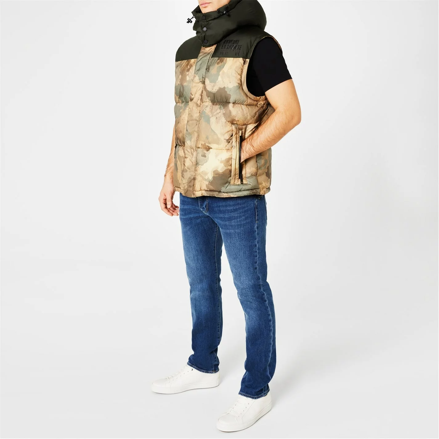 Elevate your outerwear with the Camouflage Puffer Jacket from Armani Exchange. Expertly crafted in a durable polyester fabrication, this jacket is cut in a regular fit for a classic style and features a detachable hooded neckline, detachable long sleeves with adjustable buttoned cuffs, a central two way zip fastening, additional popper fastenings and a straight hem with an adjustable drawstring fastening for comfort. The look is elevated with the Armani Exchange a contrast colourway for the hood and shoulders and a camouflage print to the rest of the body. Dry Clean Only.