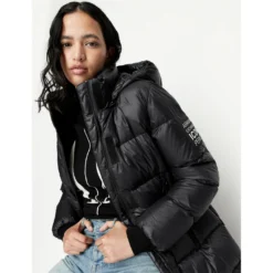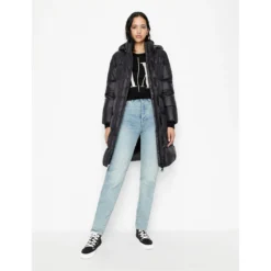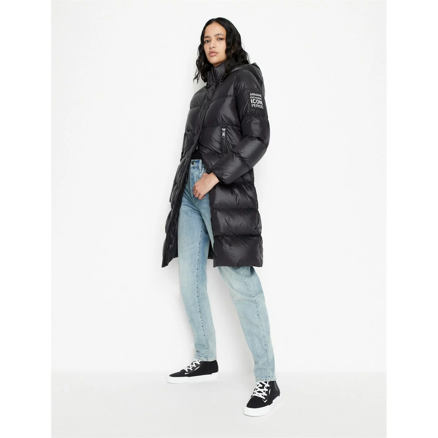 Refresh your collection with this Armani Exchange Long Padded Jacket. Constructed with full button fastening and long sleeves for a secure fit, it features a hooded neckline and two hand pockets for a classic look. This jacket is a solid colouring throughout designed with a signature logo and is complete with Armani Exchange branding.