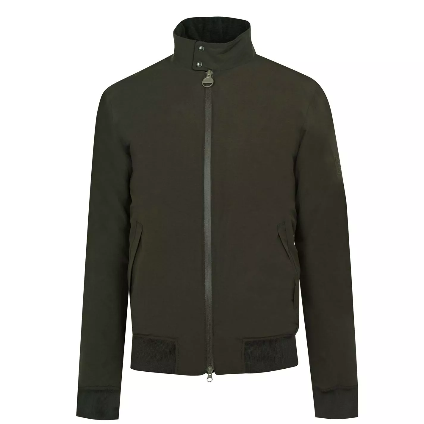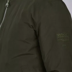 Update your jacket collection with the Arlington Wateproof Jacket from Barbour International. This lightweight and contemporary jacket features a front zip placket, stud fasten cord collar, slit pockets, internal pocket with stud fasten opening and baffle quilt with stars and stripes sleeve lining. The look is complete with Barbour International branding..