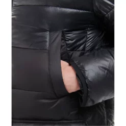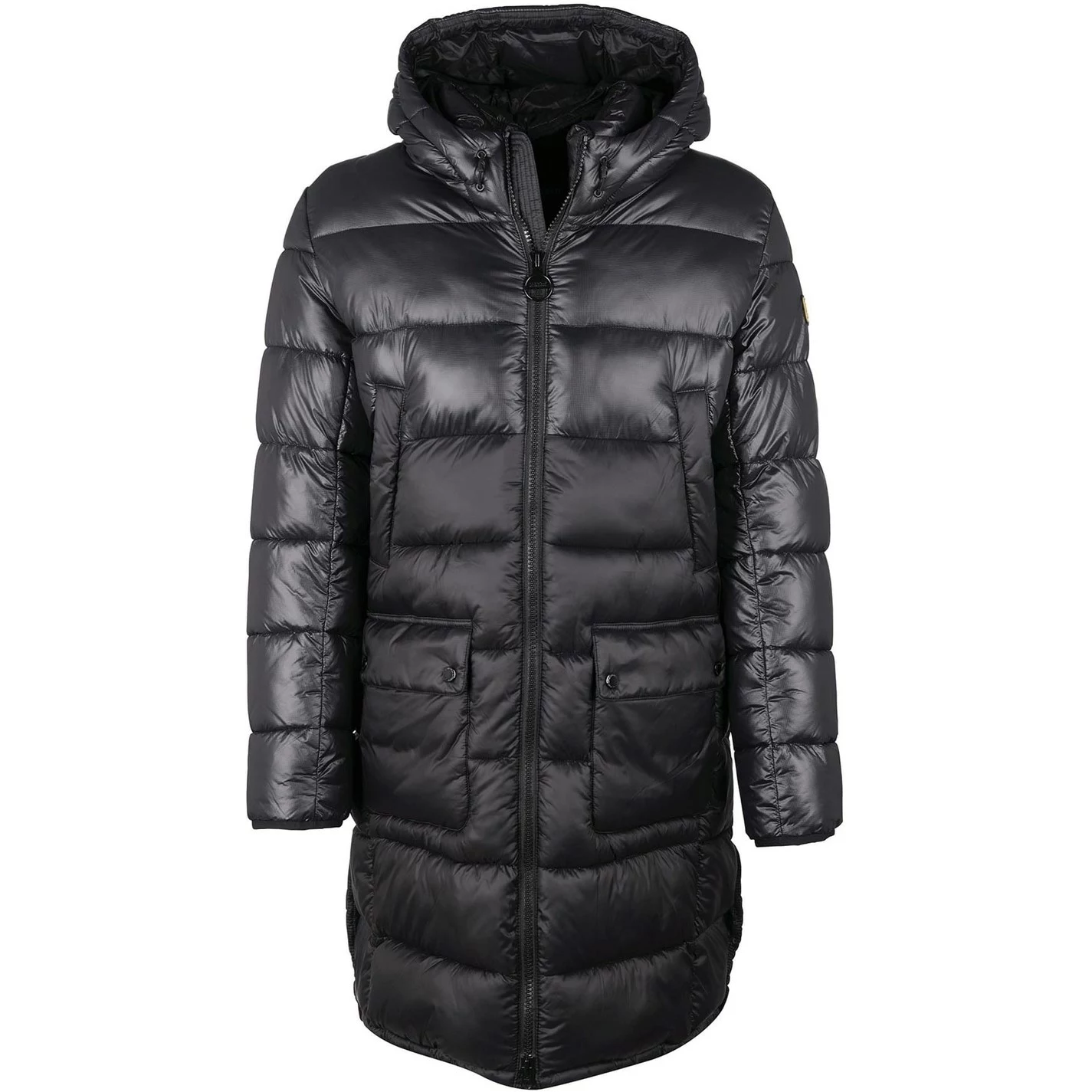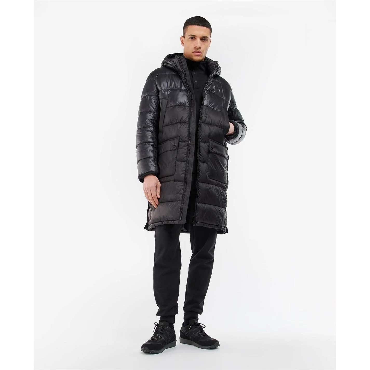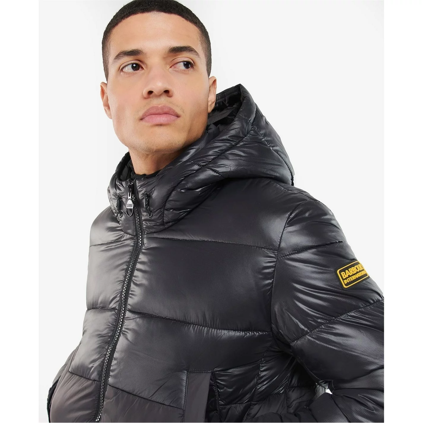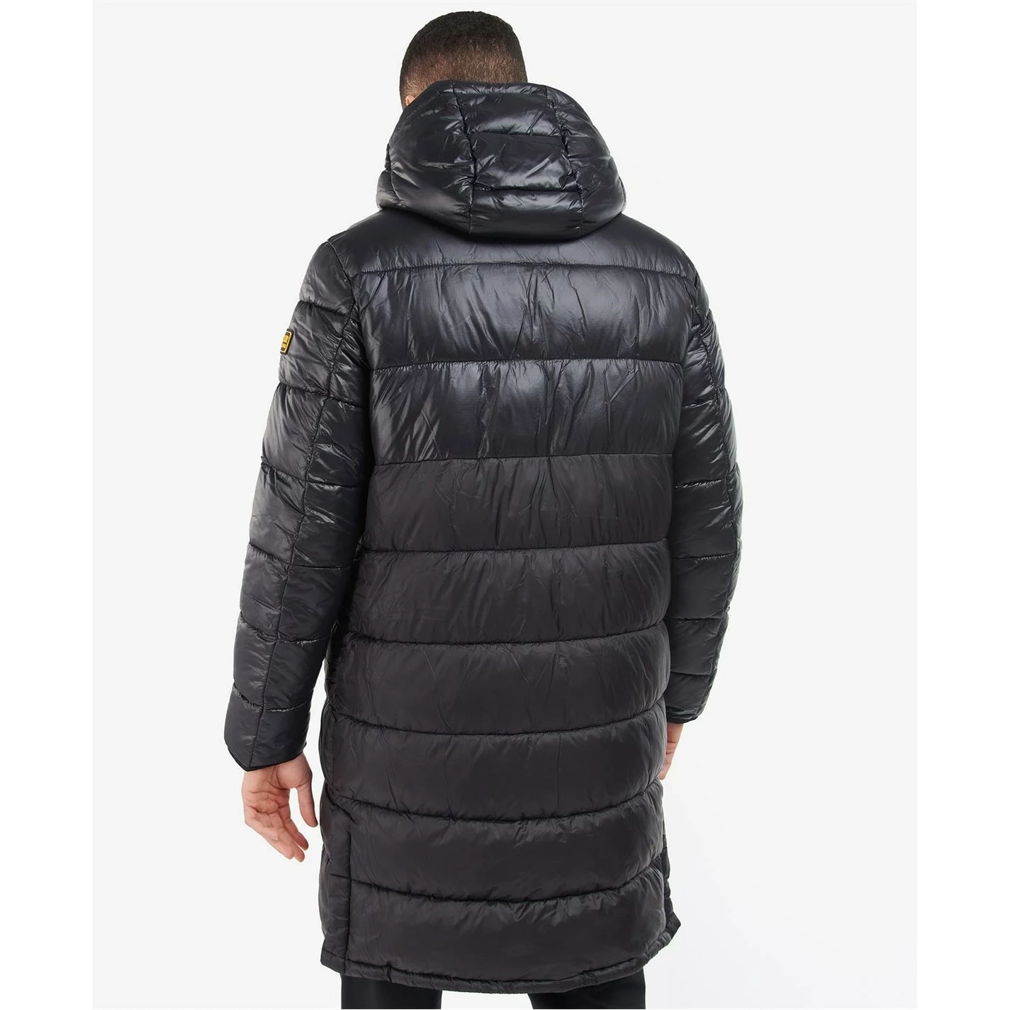 The Barbour International Balfour Parka Quilted Jacket is cut to a longer length design with a fixed hood and zip front fastening for a cosy layering staple. Boasting a contrast upper body fabric, this jacket offers storm welt pockets and lower patch pockets for ample storage space for ambles in the outdoors. With a large hood, this jacket is effortlessly finished with Barbour International branding to the left sleeve.