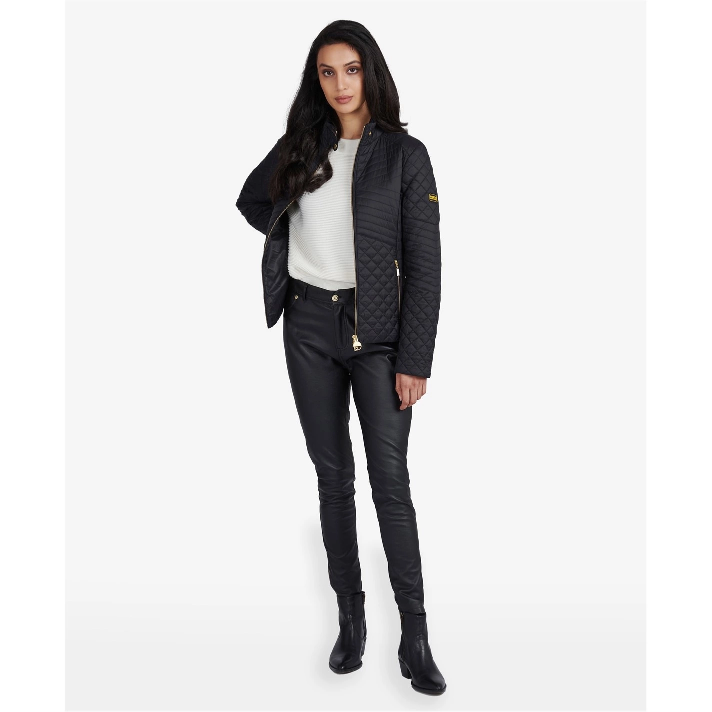 The perfect addition to your outer wardrobe, the Barbour International Formation Quilted Jacket is sure to keep your warm and weather-resistant. Crafted in a quilted design, this zipper coat has a statement quilted body and golden hardware.