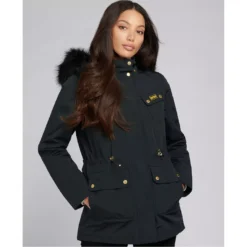 The Barbour International Berkley jacket helps you tackle the elements thanks to its waterproof technology and fixed hood. This tailored-fit garment features a front zip fastening, elasticated cuffs and inner cuff loops for use with various Barbour quilted styles.