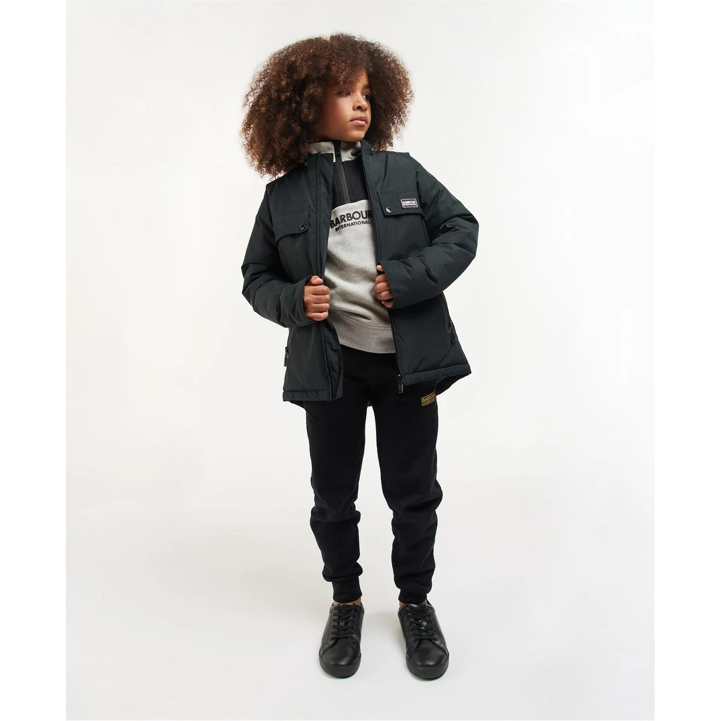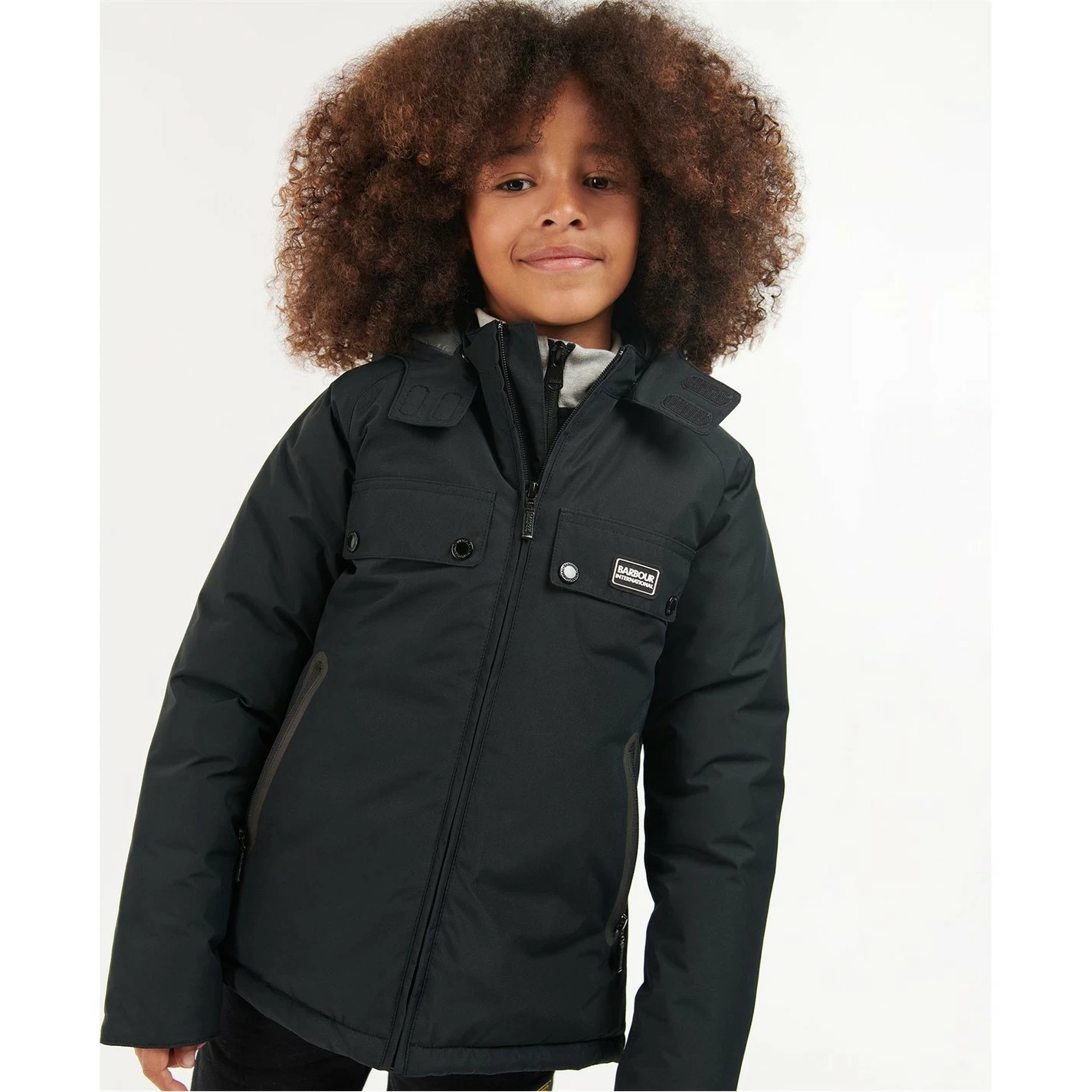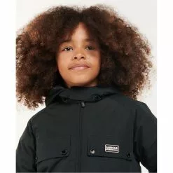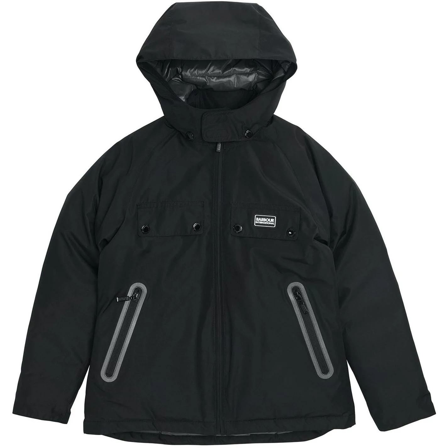 The Barbour International Proctor Showerproof jacket features a detachable hood and zip front fastening. This style offers a warm baffle quilted lining, chest pockets and lower angled zip fasten pockets for handy storage space.