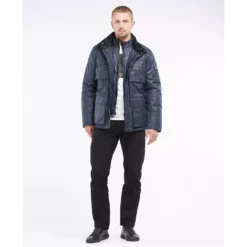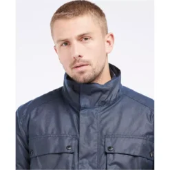 The Barbour International Clarence Wax Jacket features a stand collar with a detachable storm front. With two chest pockets and lower pockets with side entry, this jacket offers a baffle quilt lining for premium warmth.
