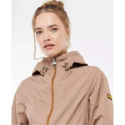 The Barbour International Dufault Jacket boasts a shorter length design with a fixed hood and zip pockets for handy storage space. Perfect for the change in weather, this jacket features a drawcord to the back waist and a logo print to the inner.