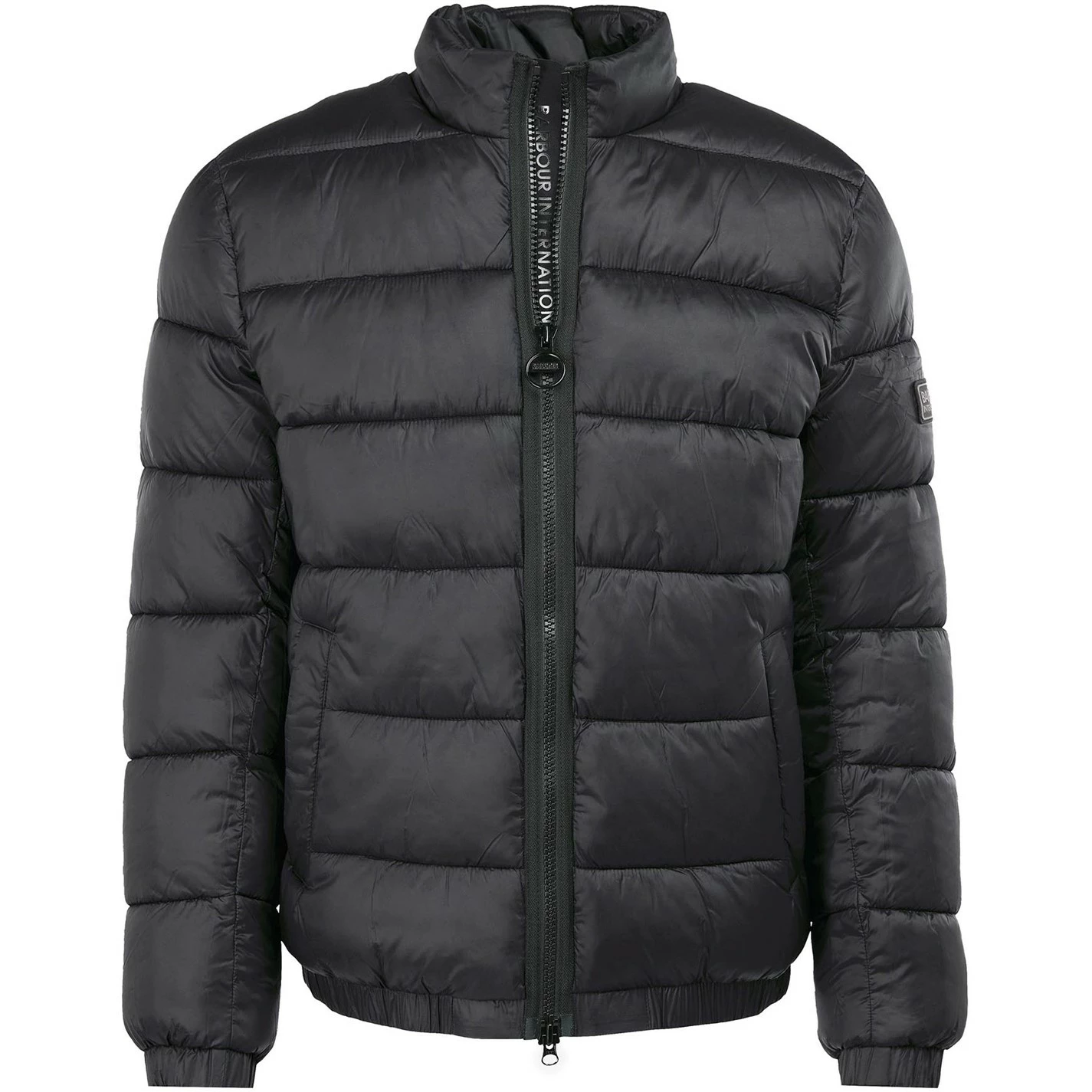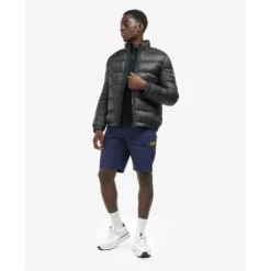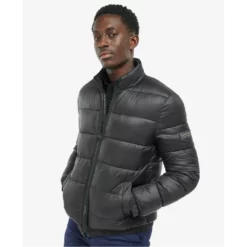 The Barbour International Elwin jacket comes in an all-over baffle quilt with a front zip fastening and a stand collar. Cut to a tailored fit, it’s complete with two lower welt pockets, as well as elasticated cuffs and hem to keep heat in when it gets chilly.