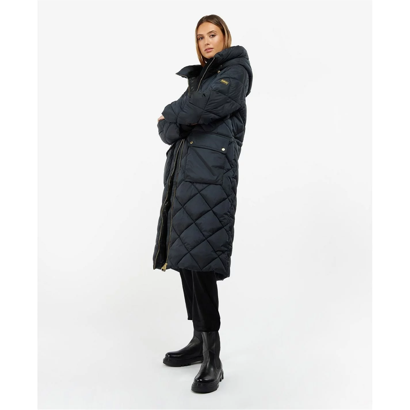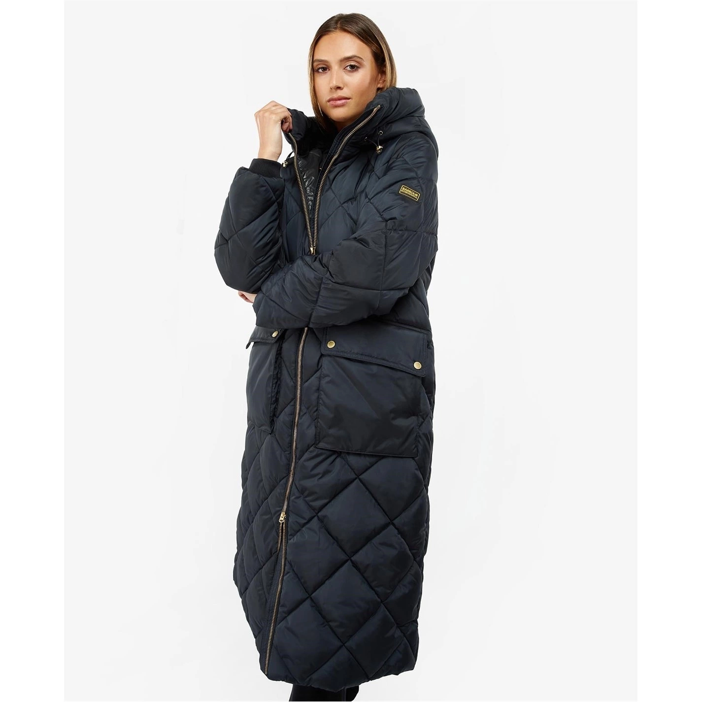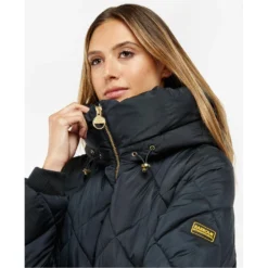 The Barbour International Gotland Quilted Jacket boasts a sleeping bag inspired long line design for uber cosy wearing. With a 4 box quilt design, this jacket features large lower pockets and a snorkel hood for added warmth and comfort.