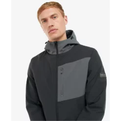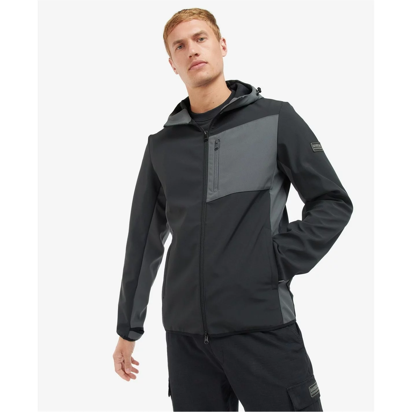 The Barbour International Mercian jacket is designed with soft shell panels and fleece backing. Warm and cosy, it features long sleeves, several pockets and branding to the sleeve to finish.