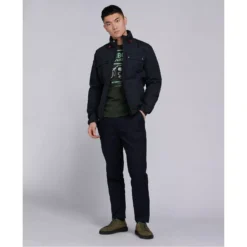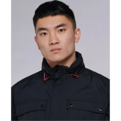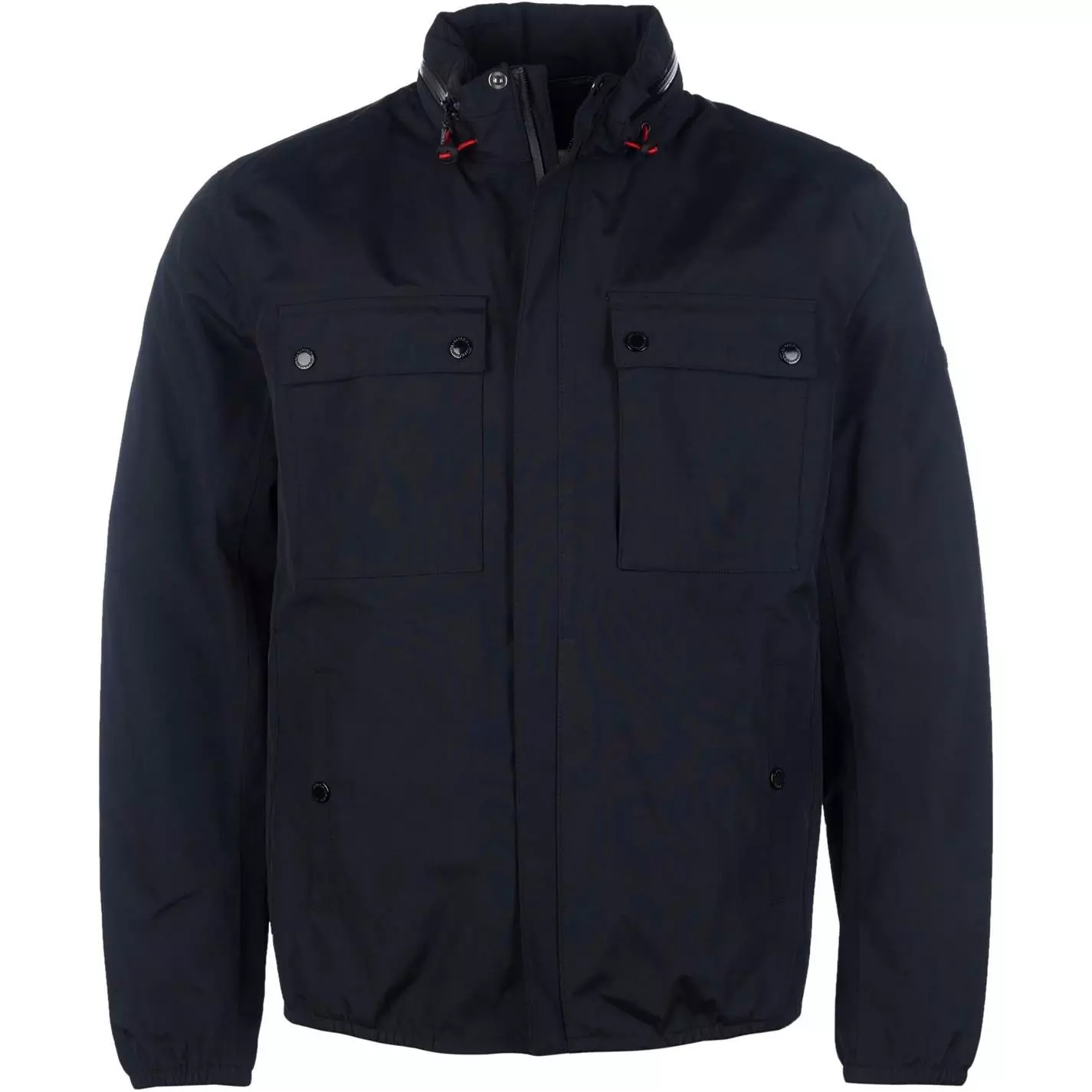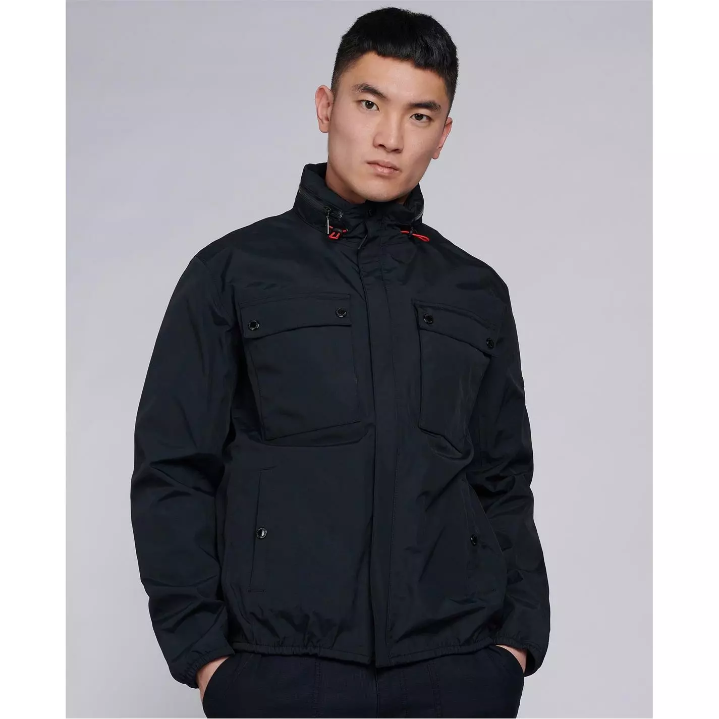 Keep any sudden showers at bay with this waterproof café racer style jacket with roll away hood in the collar, two top patch pockets and elastic cuffs and hem. It’s finished with geometric mesh-lined inner.