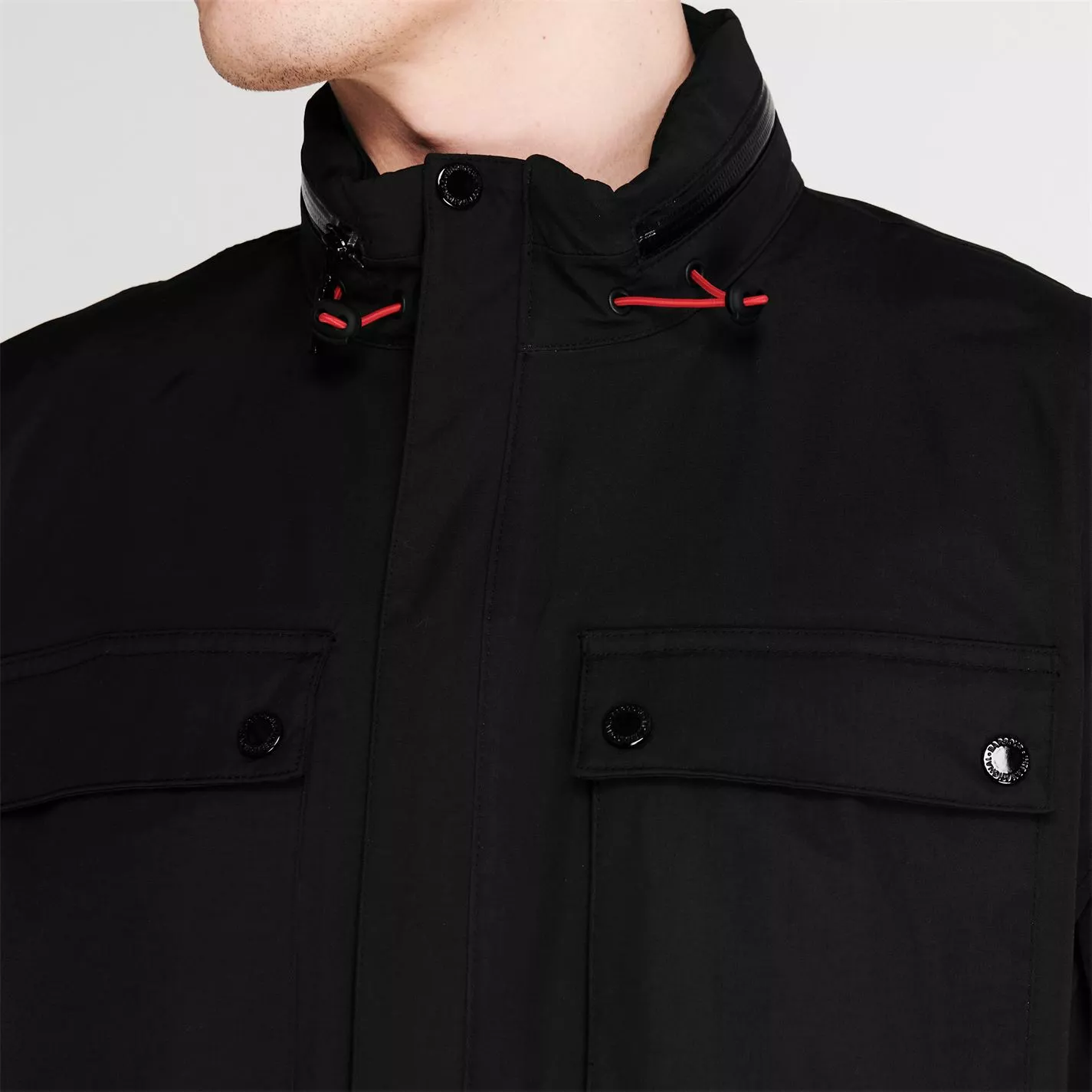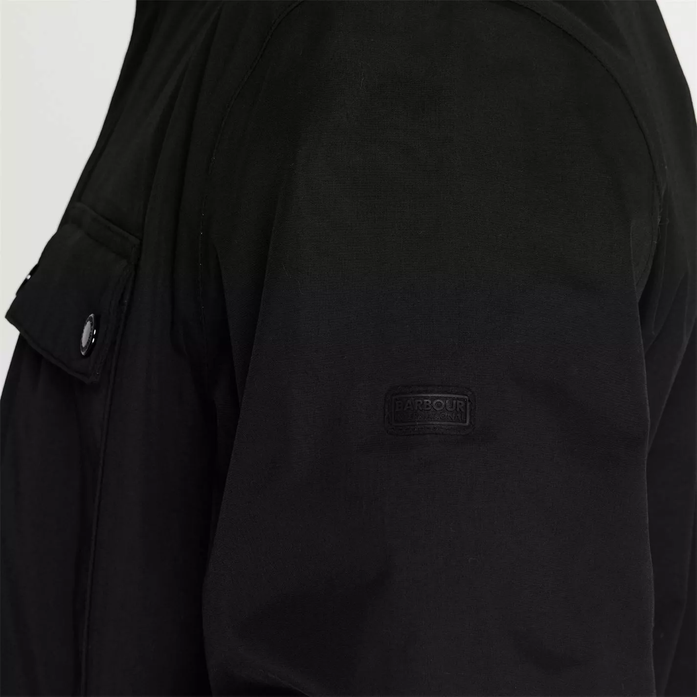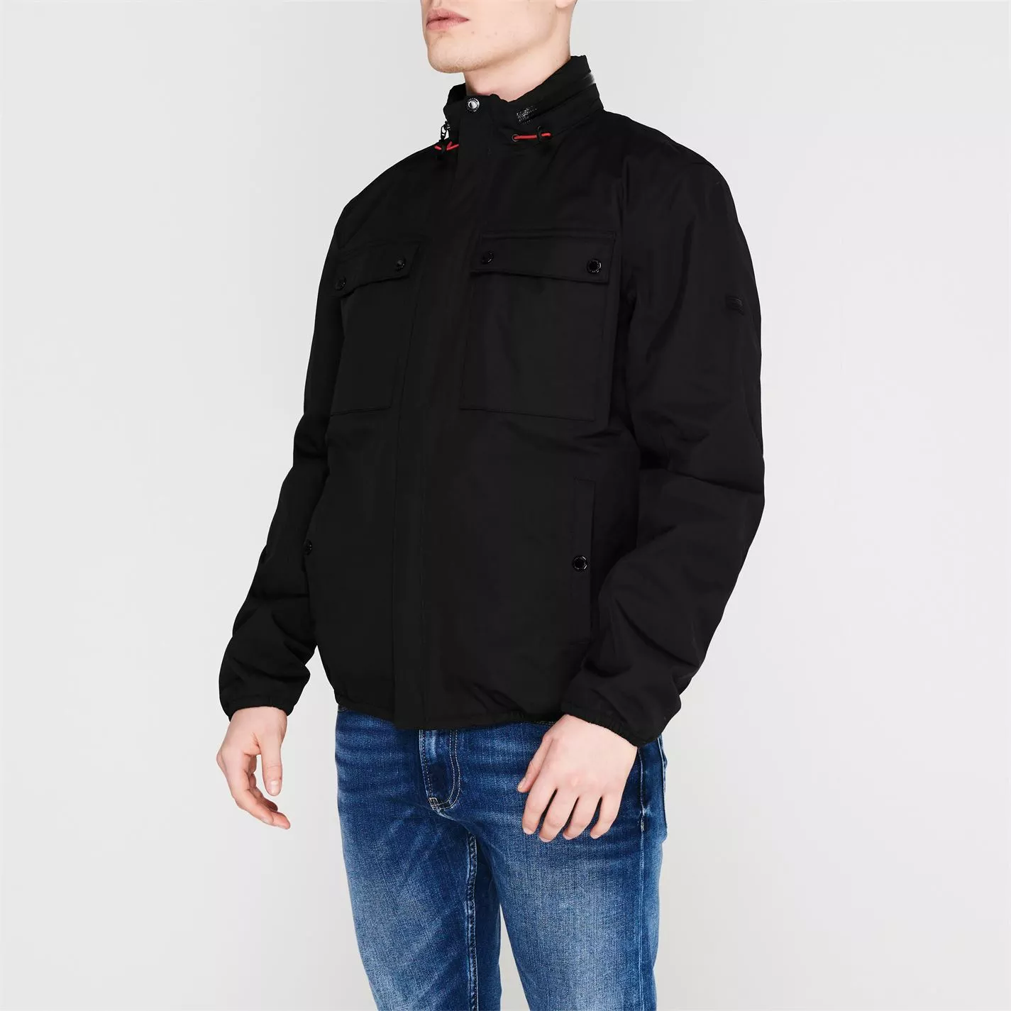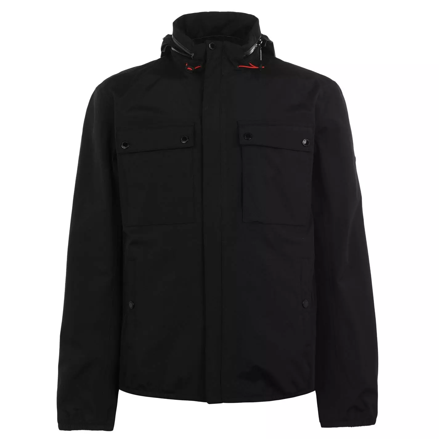 This Barbour International Mile Waterproof Jacket delivers both comfort and style for the modern man. Constructed with water-resistant fabrication, this jacket is crafted with a two-way zip fastening leading to a short stand collar with roll-away hood for when caught in the rain and elasticated cuffs and hem for a snug fit. Boasting multiple pockets, the design is complete with a subtle tonal logo to the sleeve for brand recognition.