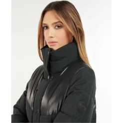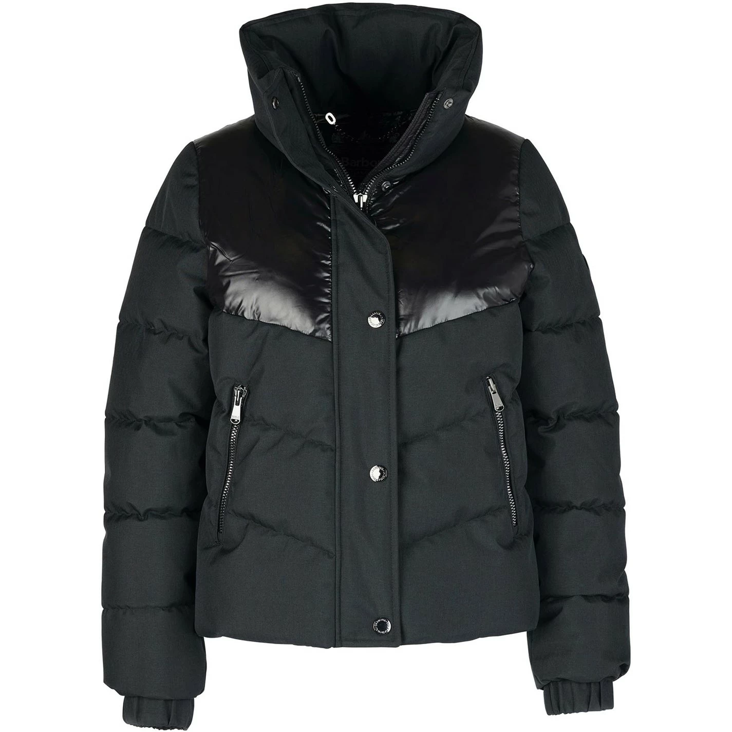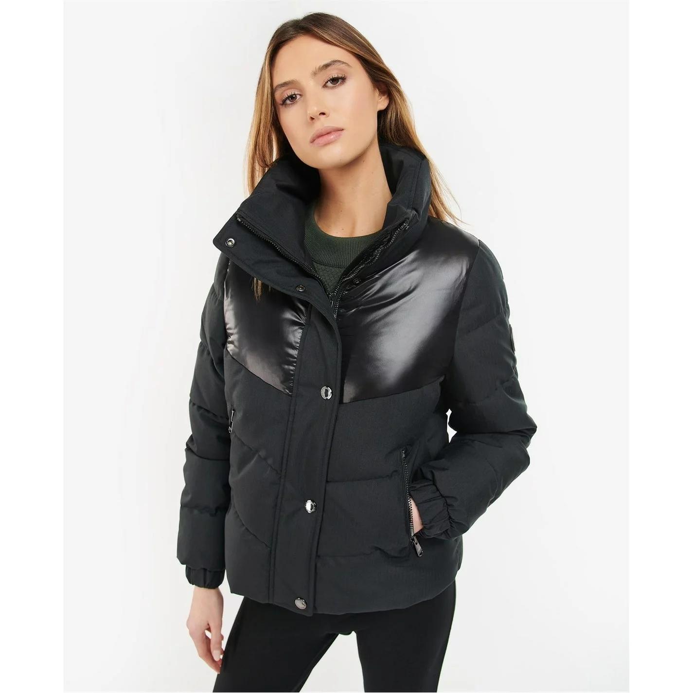 A shorter length design, the Barbour International Titanium Quilted Jacket boasts contrast shine panels and a funnel neck. Perfect for effortless layering, this jacket boasts a boxy style with elasticated cuffs and zip pockets for handy storage space.