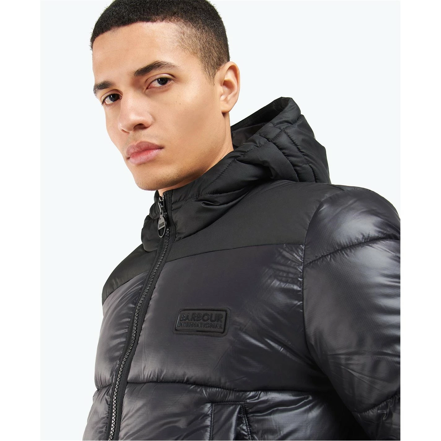 The Barbour International Sprint Quilted Jacket exudes premium style with an all over baffle quilted design and a fixed hood. Showcasing branded tape detail, this jacket features a laid on front zip with large double welt pockets for premium storage space. The perfect cold weather staple, this jacket is finished with branding to the left sleeve.