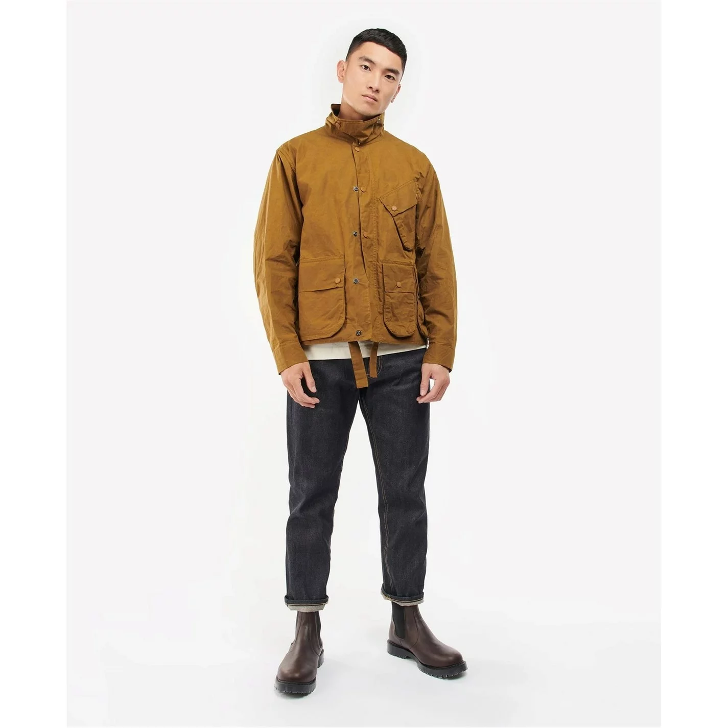 Raymond Lowey, a famous industrial designer, once said ‘you must create your own design style’ YMC have since sought inspiration from this creating an innovative and creative brand. Taking inspiration from military and workwear garments, YMC has developed functional wear and fashion in parallel so both can be enjoyed as one. Through an open-minded lens, YMC’s ethos explores the innately disruptive power of youth culture, combining Barbour Internationals modernity and authenticity to create an empowering collection of clothing. The Barbour International x YMC Dirt Gang Casual Jacket features a stud front fastening for a workwear-inspired aesthetic. With the collaboration’s iconic angled chest pocket, this jacket offers an unlined style for lightweight wearing. A throat tab offers statement styling while different size lower bellows pockets offer a utility-inspired feel.
