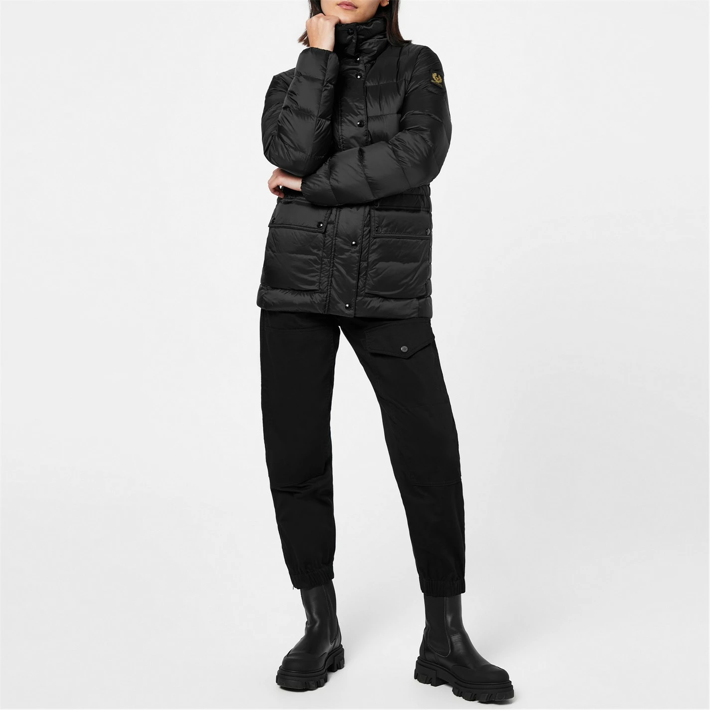 Add a staple to you Winter wardrobe with the Chase Jacket from Belstaff. Crafted with a high density nylon shell to keep you warm all year round. This piece features a front zip fastening with snap button placket, two flap pockets and an adjustable drawstring waist for a personalised fit. Completed with a leather logo patch on the sleeve for a show of brand loyalty.