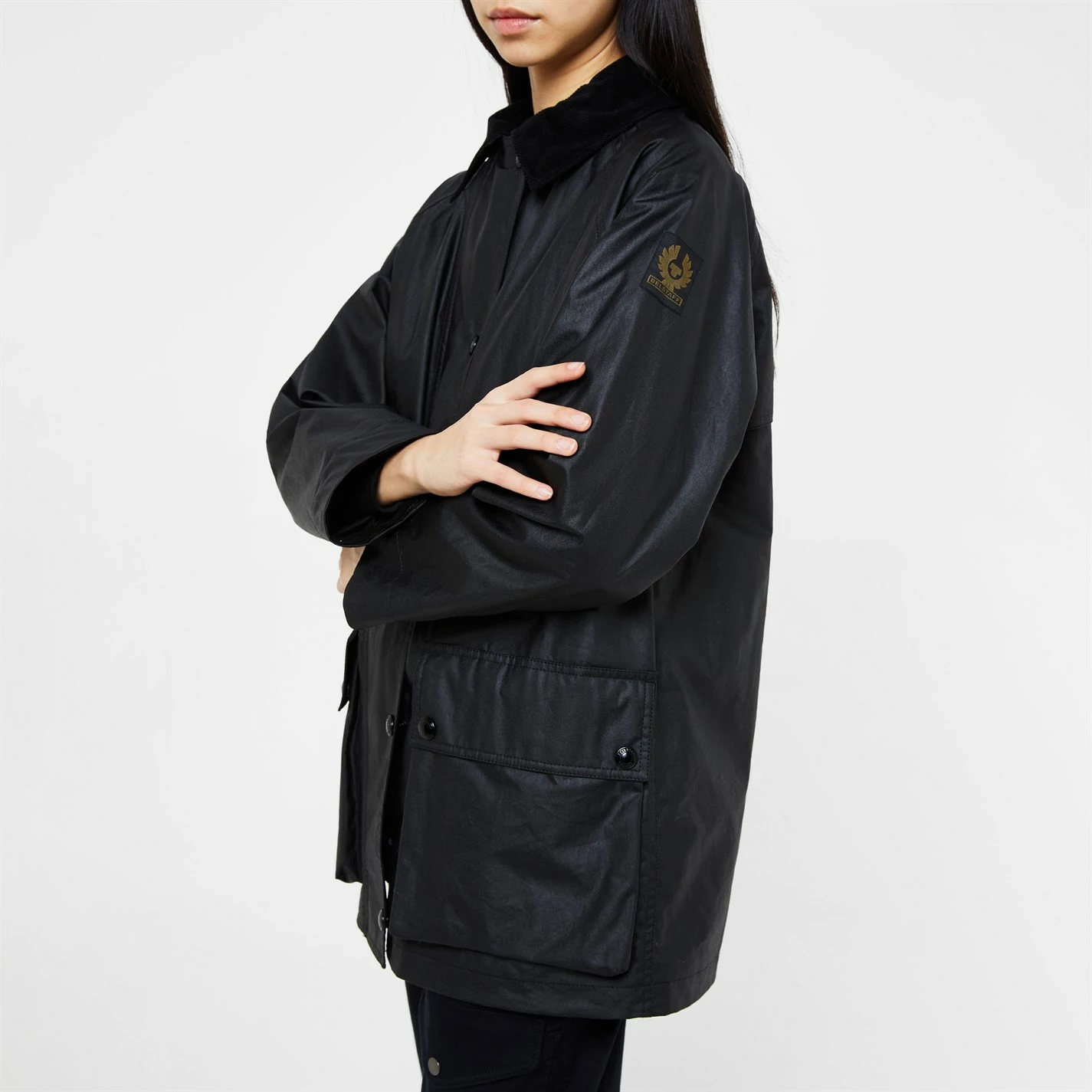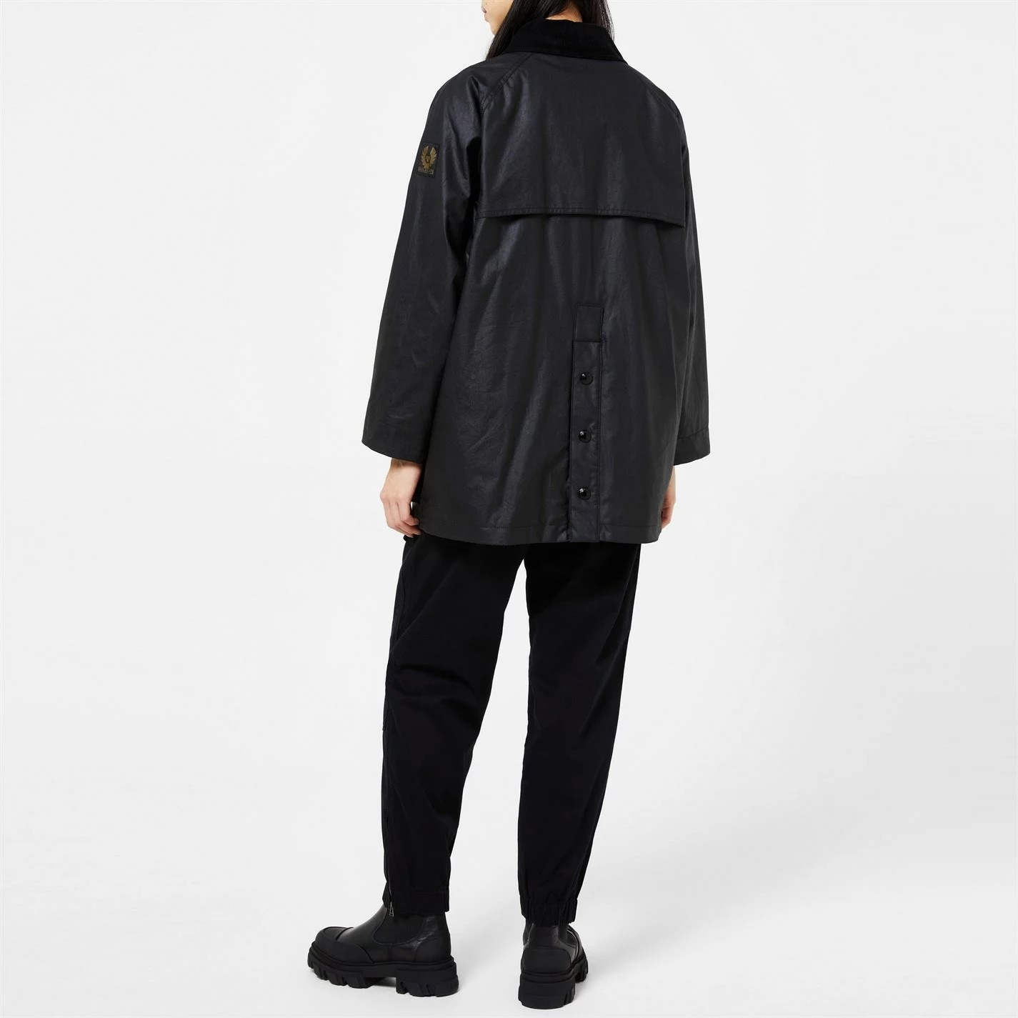 Stay warm and fashionable with the Festival Jacket from Belstaff. This jacket features two welt pockets to the chest alongside two large pockets to the front to store your everyday essentials and features a front button fastening for ease. This look is designed in an oversized cut for a comfortable feel making it perfect for the festival season. This coat is crafted from waxed cotton paired with a ribbed suede collar.