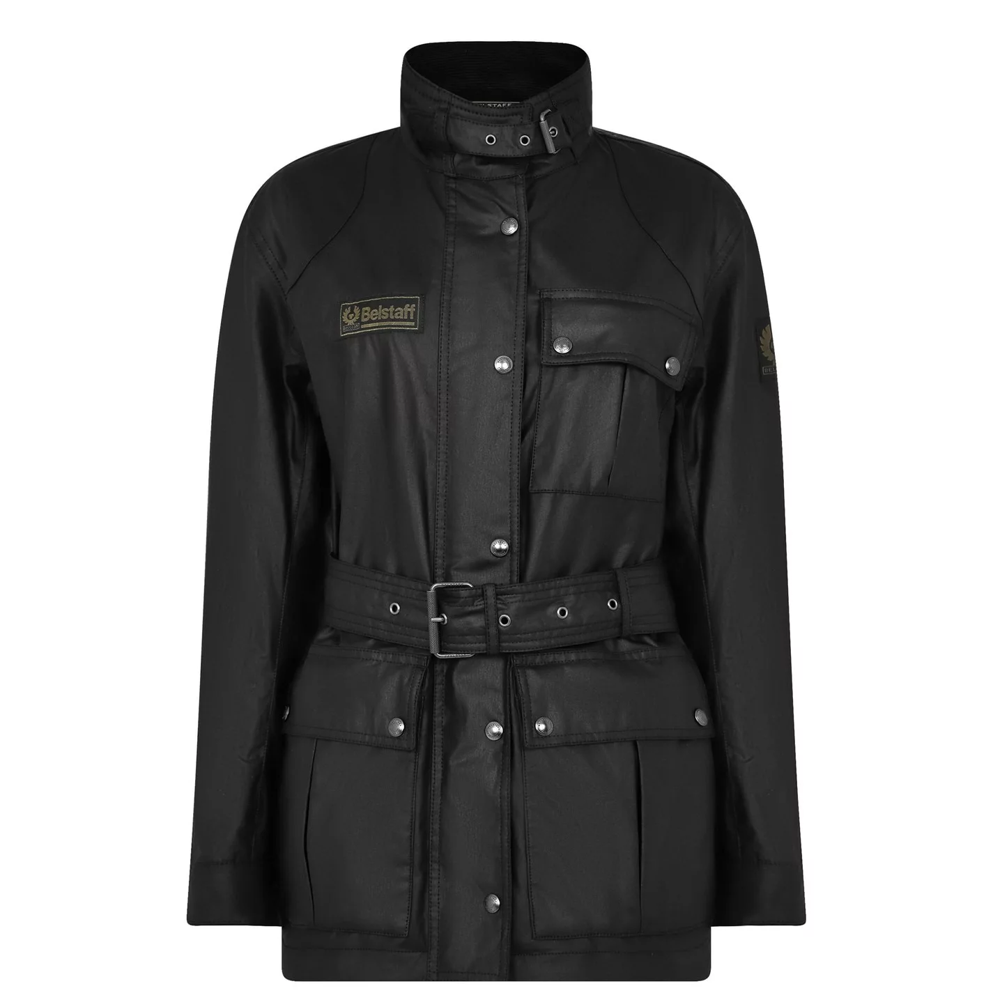 Invest in an outerwear icon with the Heirloom Trialmaster Jacket from belstaff. Made from a wind- and water-repellent waxed cotton, this jacket is designed with a soft cotton twill lining and internal corduroy trims to the collar, cuffs and hem to ensure a warm and weatherproof wear. With snap cuffs to the sleeves and a full zip closure, this jacket is belted at the waist and collar so you can fully adjust your fit. Characterised by twin flap pockets to the front and an additional flap pocket to the chest, the Heirloom Trialmaster is finished with the Belstaff logo badge stitched to the chest and the woven Phoenix patch adorning the sleeve.