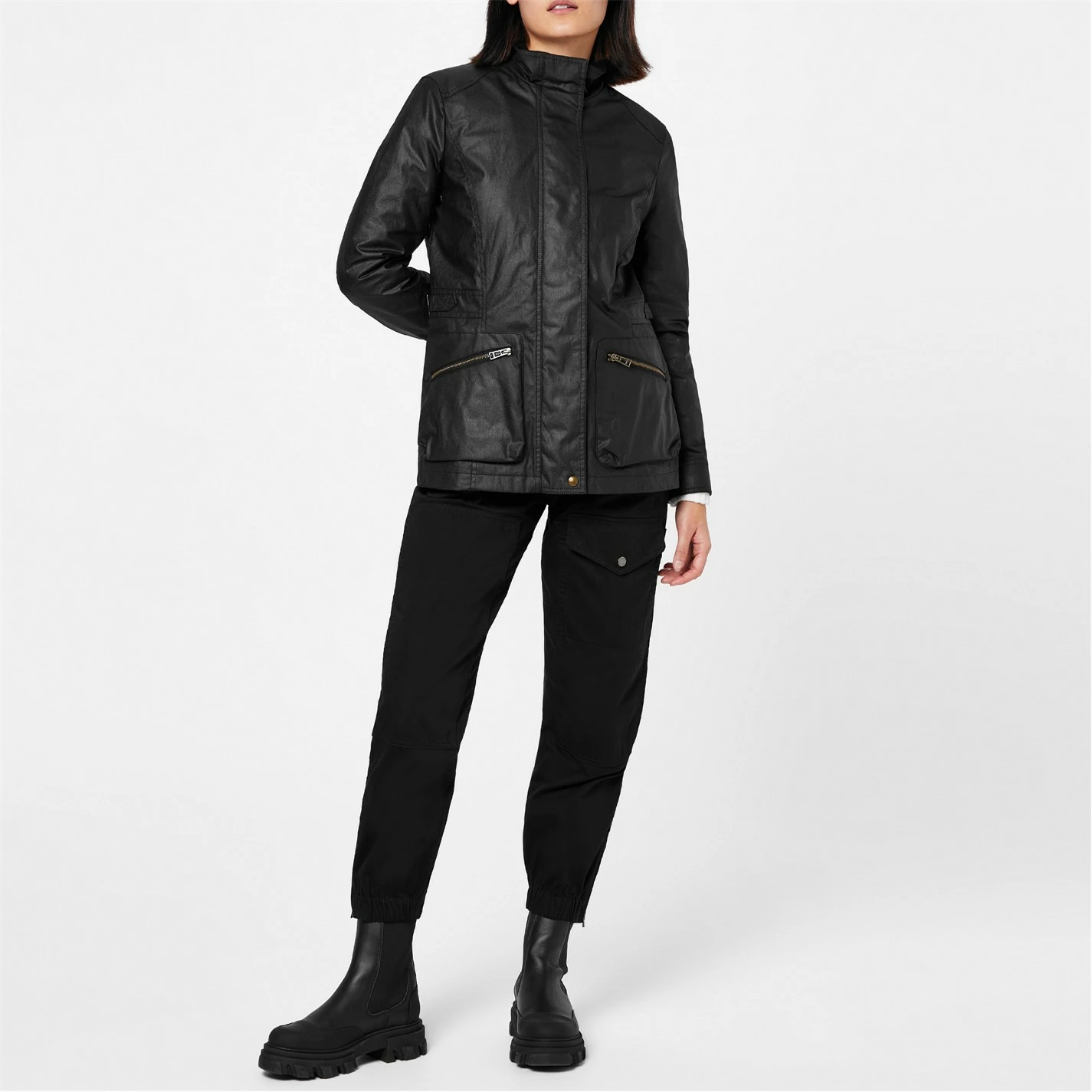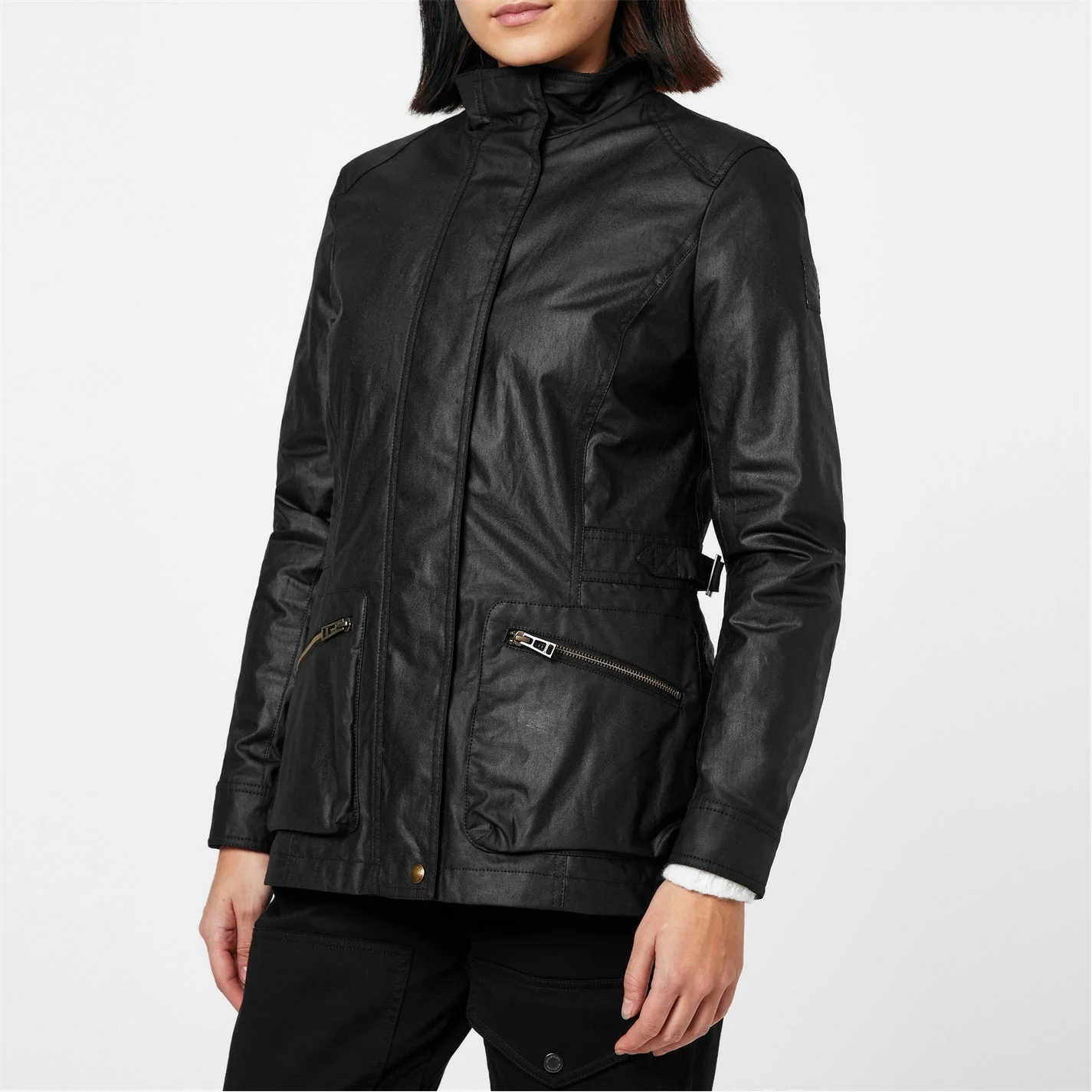 Revive your outerwear wardrobe with a modernized version of a classic style this Madeline Jacket from belstaff. Crafted in a soft polyamide material, this waxed jacket features a high neckline with buckle fastening, long sleeves, press stud cuffs, a central zip closure with press stud fastening, two open side pockets and four press stud pockets for your essentials. In a waterproof and windproof construction for added durability. The look is finished with the brand’s signature patch to the sleeve for brand recognition.