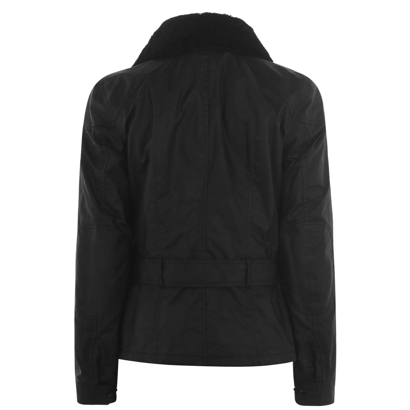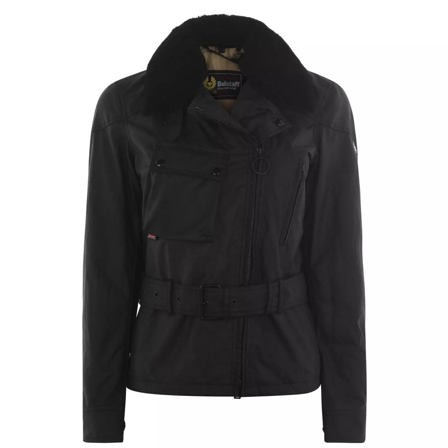 Upgrade your outwear collection with this Sammy Miller Jacket from Belstaff. Crafted in a soft cotton material, this jacket features long sleeves, a central two way zip fastening, two pockets to the front and an adjustable buckle belt for a personalised and comfortable fit. Completing the look is a detachable fur collar and Belstaff branding for a designer look. This style is treated with the brand’s signature waxing process that renders it fully water resistant. A great way to stay in style during the cooler seasons. Main / Body Lining: 100% cotton. Sleeve Lining: 100% viscose. Padding: 100% polyester. Specialist dry clean only.