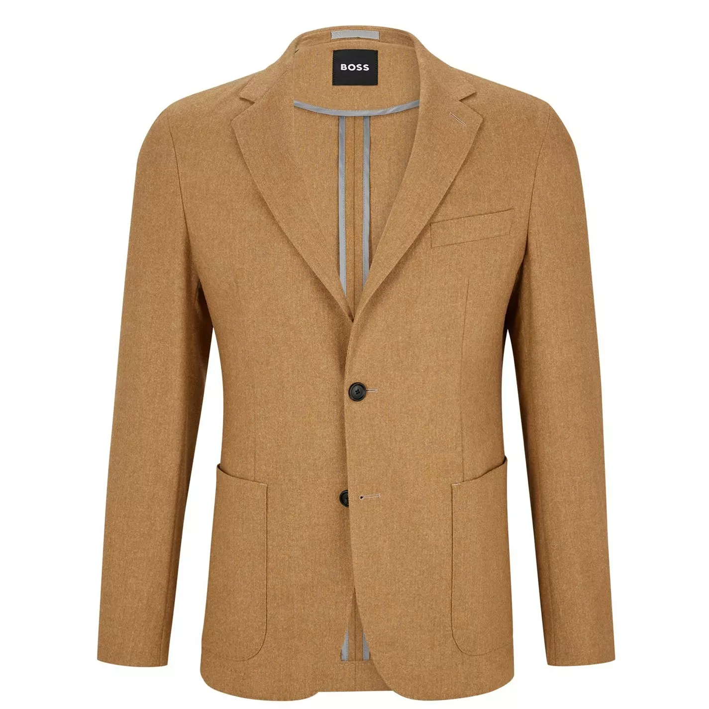 Refresh your collection with this BOSS Hanry Suit Jacket. Constructed with a notched lapel collar, two button fastening for a secure fit, it features long sleeves and two hand pockets for a classic look. This jacket boasts a simple yet stylish, minimalist block colour design throughout with a famous logo and is complete with BOSS branding.