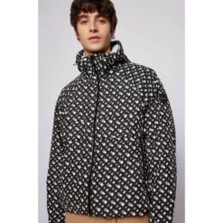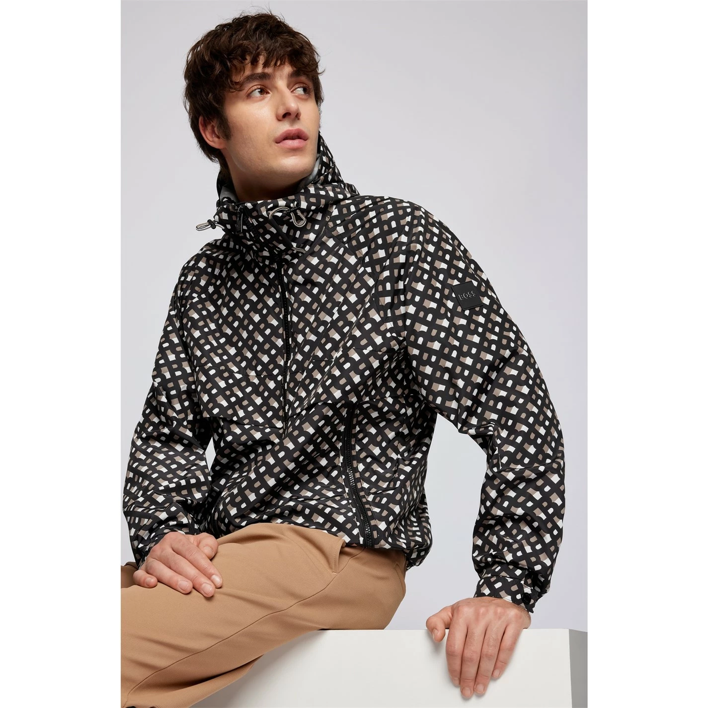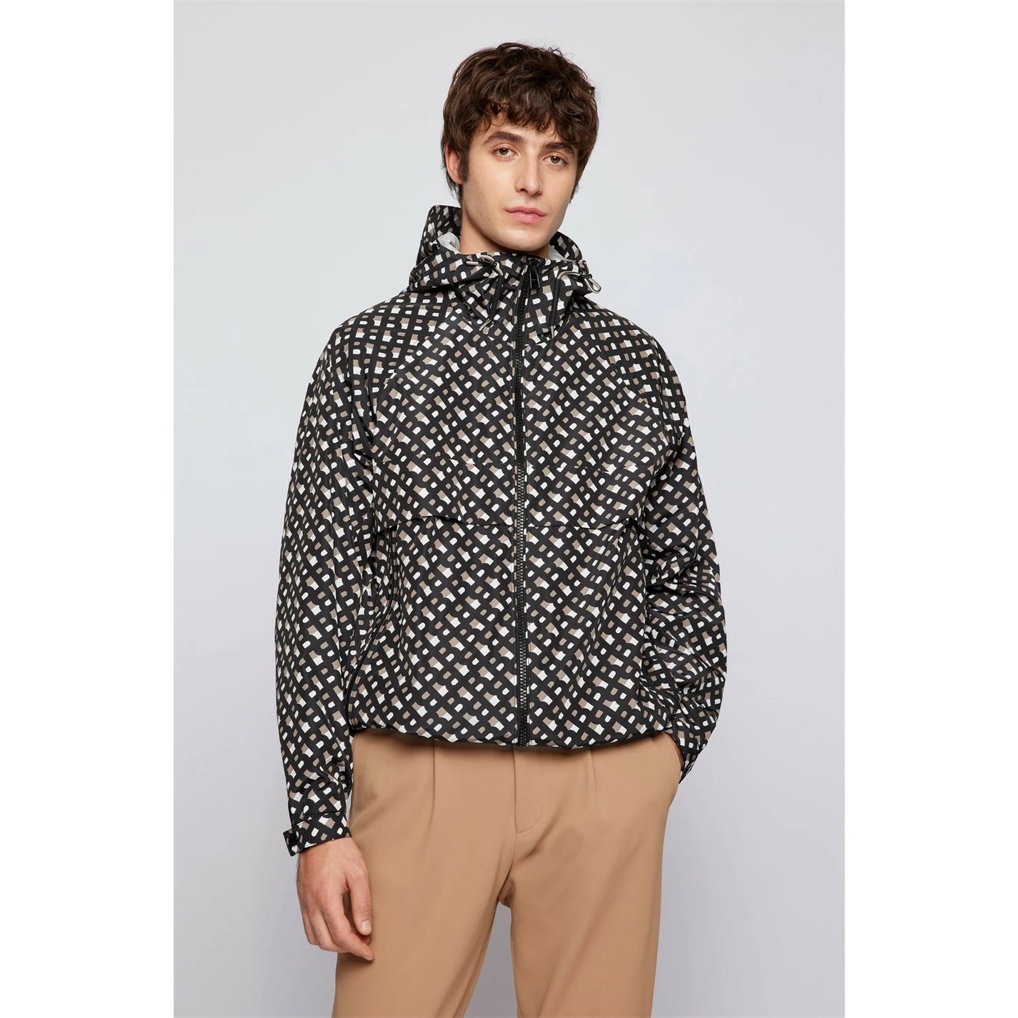 Revamp your outerwear with the Boss Chump 1 Rain Jacket. Crafted with a polyester material in a regular fit, this jacket features an attached hood with an adjustable drawstring, long sleeves, elasticated trims and zippered side pockets. Whilst decorated with an all over print, this coat is finished with the Boss branding.