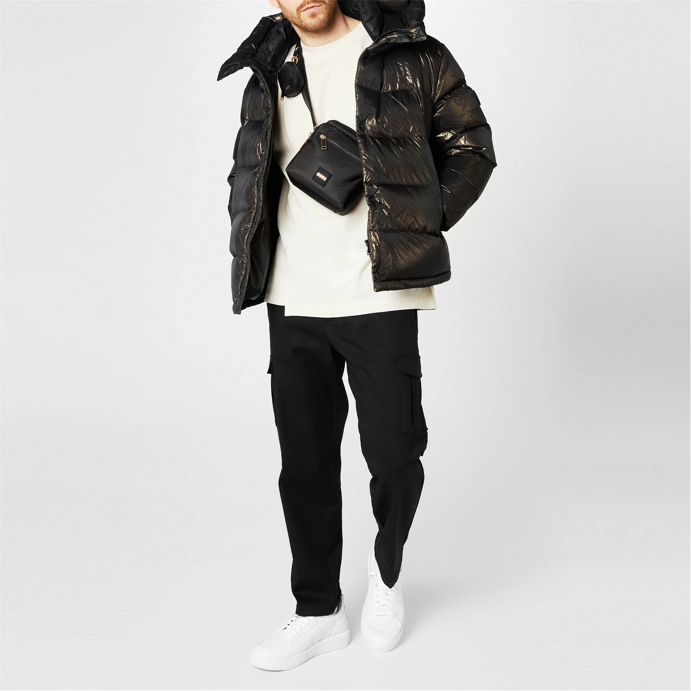 Elevate your wardrobe with this water repellent Dantor Puffer Jacket from BOSS. Artfully crafted from a durable nylon composition, this piece is cut in a regular fit and features a hooded collar, press stud fastenings down the centre, long sleeves, zipped pockets to the front and interior, an inner lining and a straight hem. Decorated in arresting block colour throughout, the design is elevated with duck down filling for warmth and is completed with BOSS monograms to the lining and left sleeve. Fabric / Lining / Facing / Sleeve Lining: 100% polyamide. Filling: 80% duck down, 20% duck feather. Dry Clean Only – always refer to and follow washing instructions for best wear.