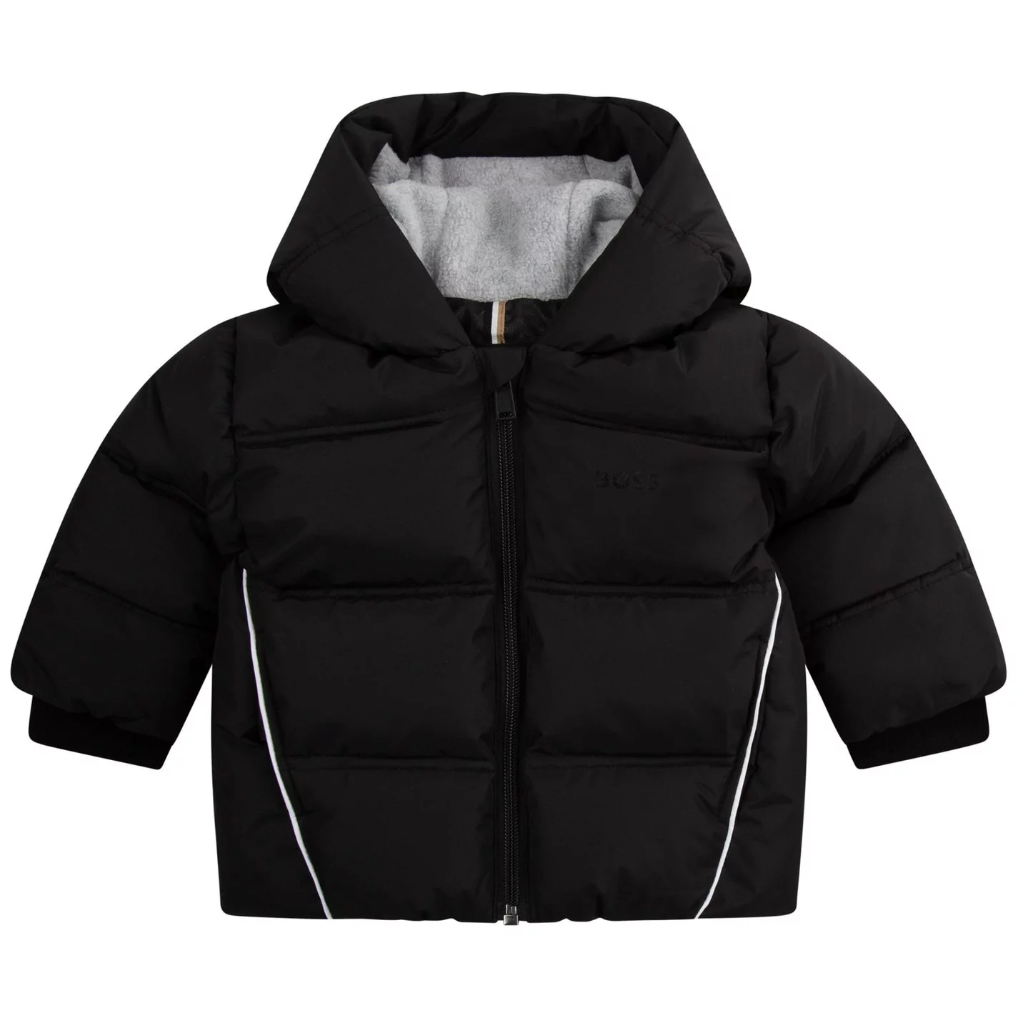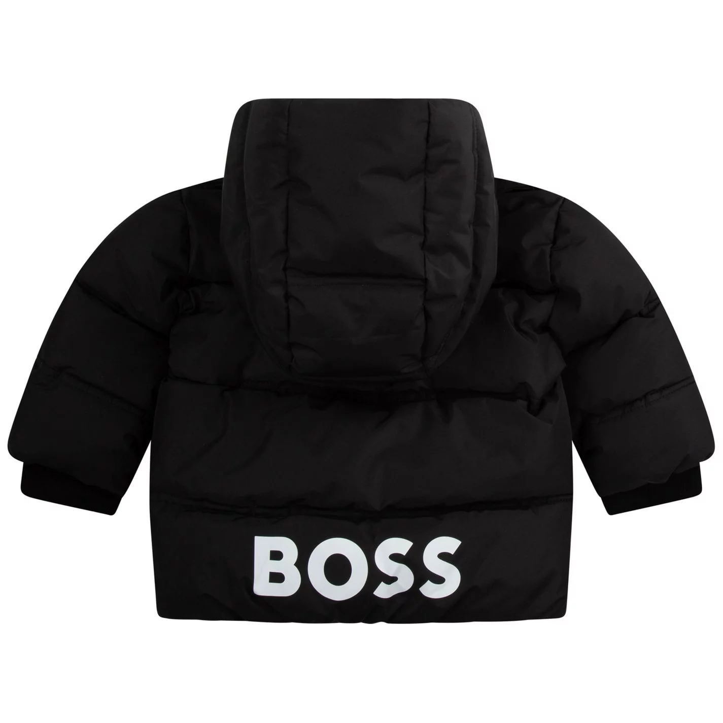 Elevate your collection with this BOSS Logo Jacket. Crafted with full zip fastening and long sleeves with ribbed cuffs for a comfortable fit, it features a hooded neckline and two hand pockets for a classic look. This jacket is a solid colouring throughout designed with a signature logo to the back and is complete with BOSS branding.