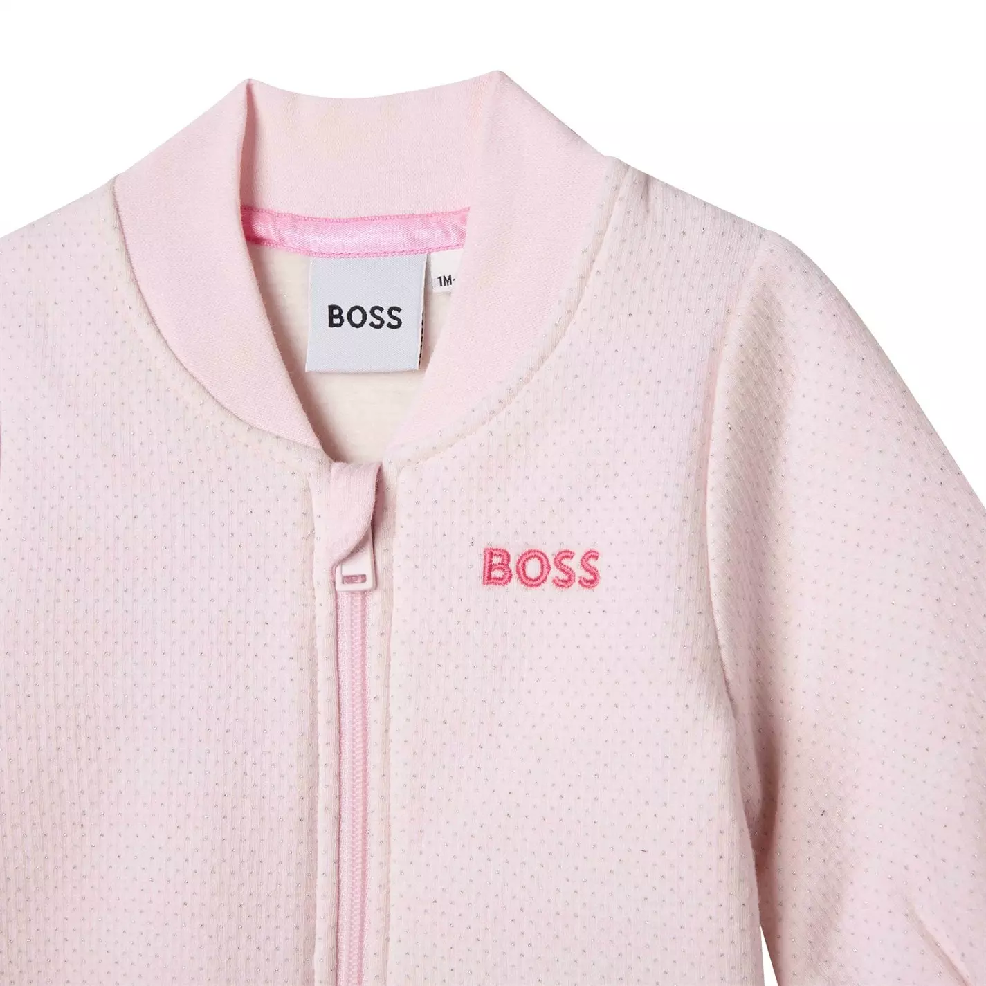 Update your collection with this BOSS Logo Zip Jacket. Crafted with full zip fastening and long sleeves for a classic look, it features ribbed trims for a comfortable fit. This jacket is a solid colouring throughout designed with a signature logo and is complete with BOSS branding.