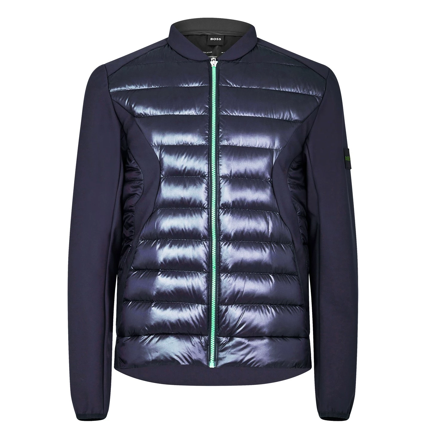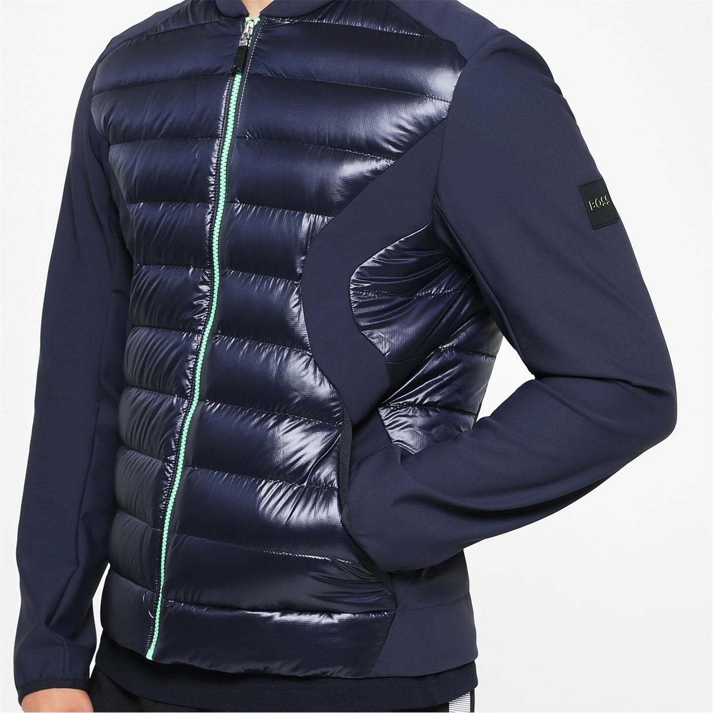 The Wittaker Jacket by Boss will elevate your performance on and off the course, making a great addition to your outwear rotation. Crafted from a insulated quilted panels to the front with lightweight duck down padding and stretch jersey fabric to the sleeves and rear for ease of movement when loading up your swing. The jacket features a flat collar, two zip pockets to to the front, full zip fastening and long sleeves with elasticated cuffs. The look is completed by the signature Boss badge at the sleeve.
