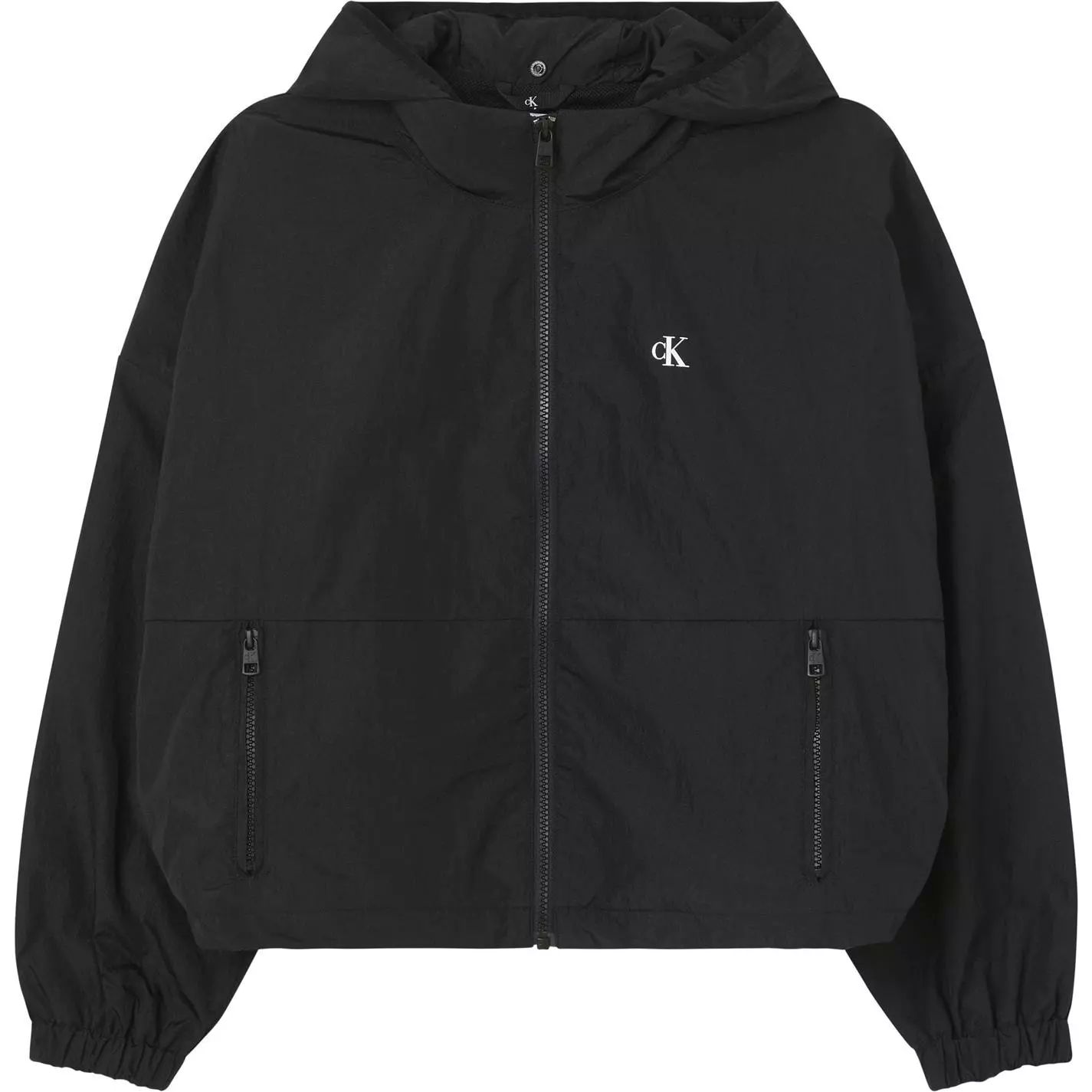 The Calvin Klein Jeans Crinkle Jacket is a great addition to your casual wardrobe, crafted with a central zip fastening coupled with a lightweight hood and elasticated trim to the wrist cuffs for a comfortable fit. The jacket also benefits from having a packable design that makes it great for easy storage, two zip fastening hand pockets provide ample space for your essentials, completed with the classic Calvin Klein Jeans branding.