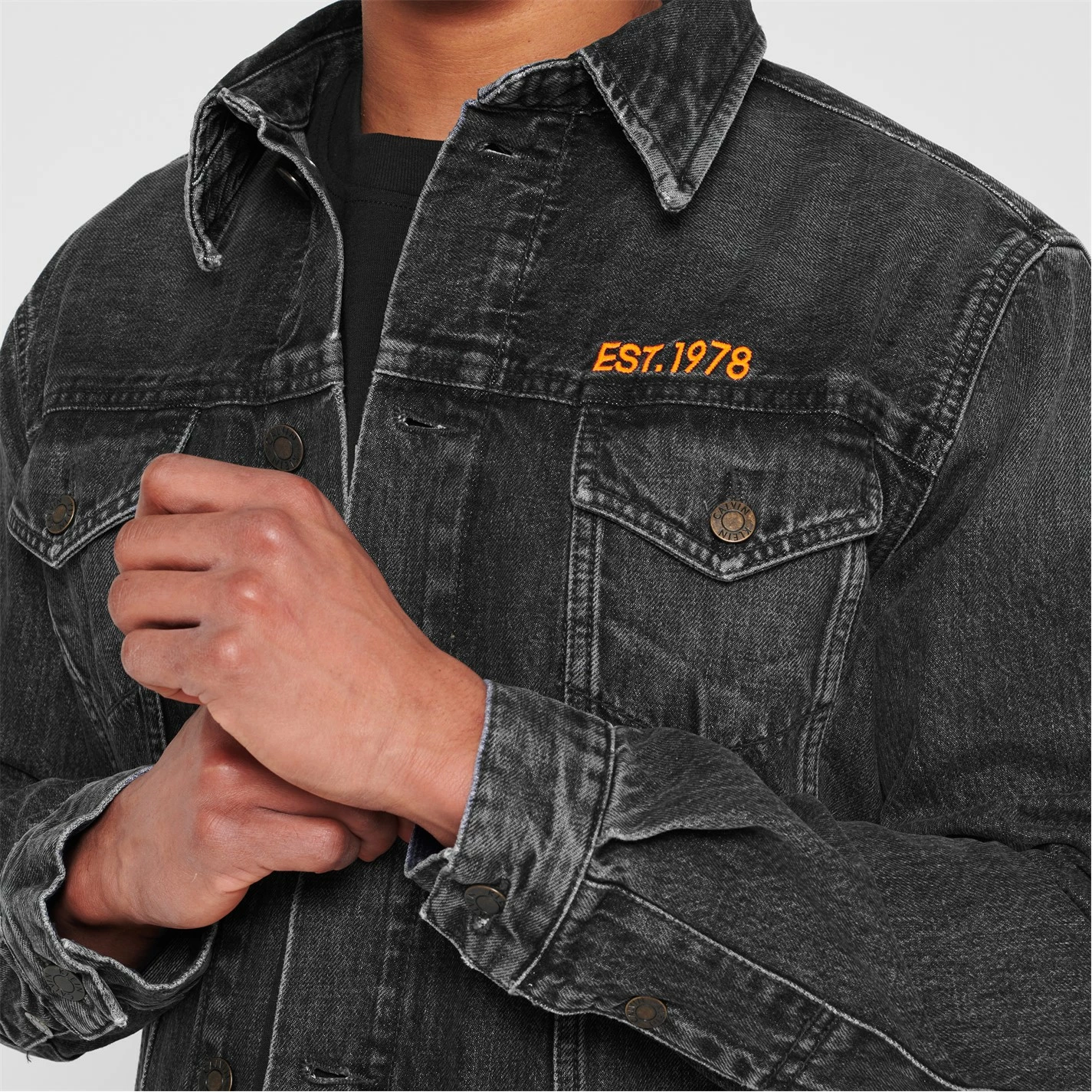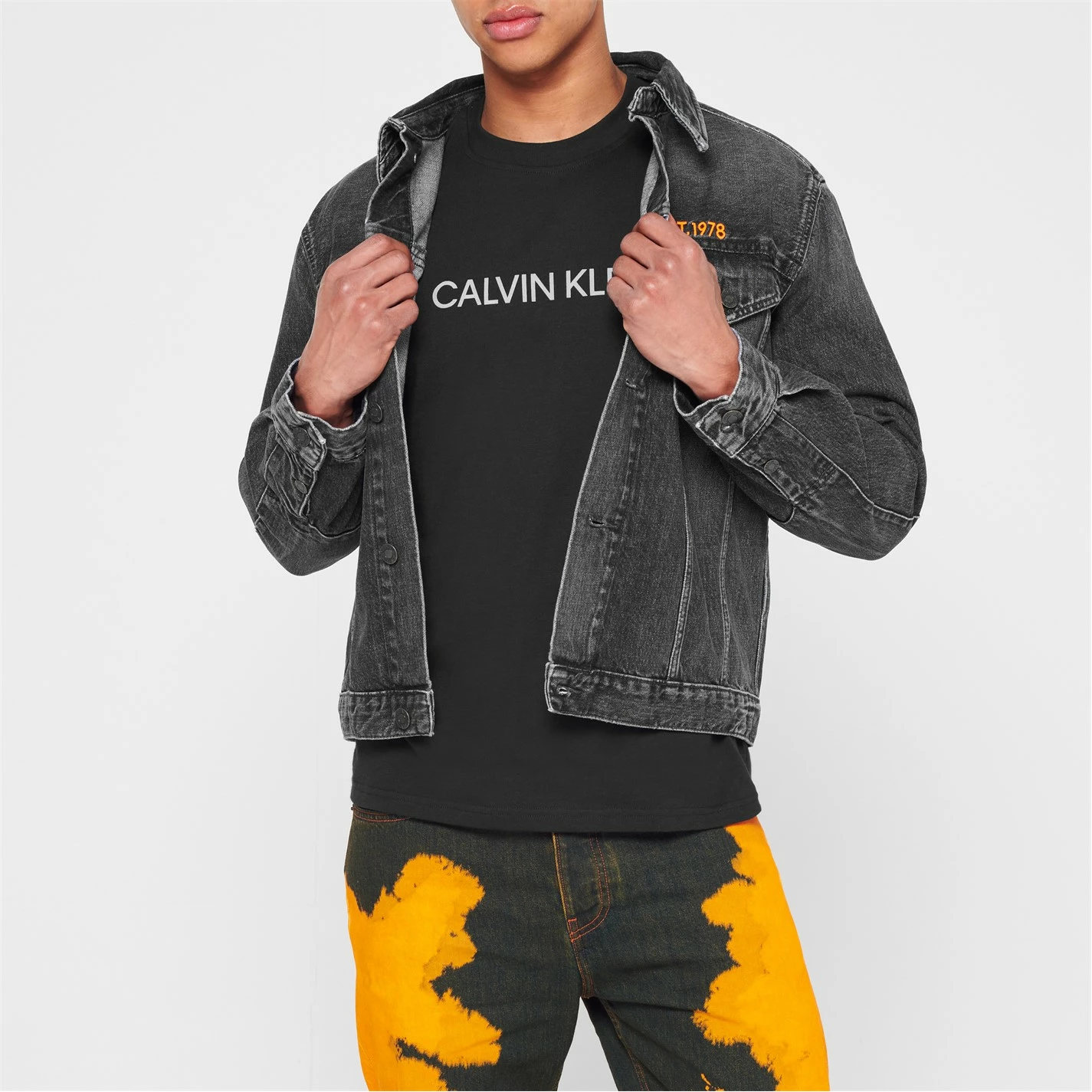 Enhance your collection with this Calvin Klein Jeans Long Trucker Jacket. Constructed with a folded collar and full button fastening for a secure fit, it features long sleeves with button cuffs and two chest pockets for a classic look. This jacket is designed with a signature logo and is complete with Calvin Klein Jeans branding.