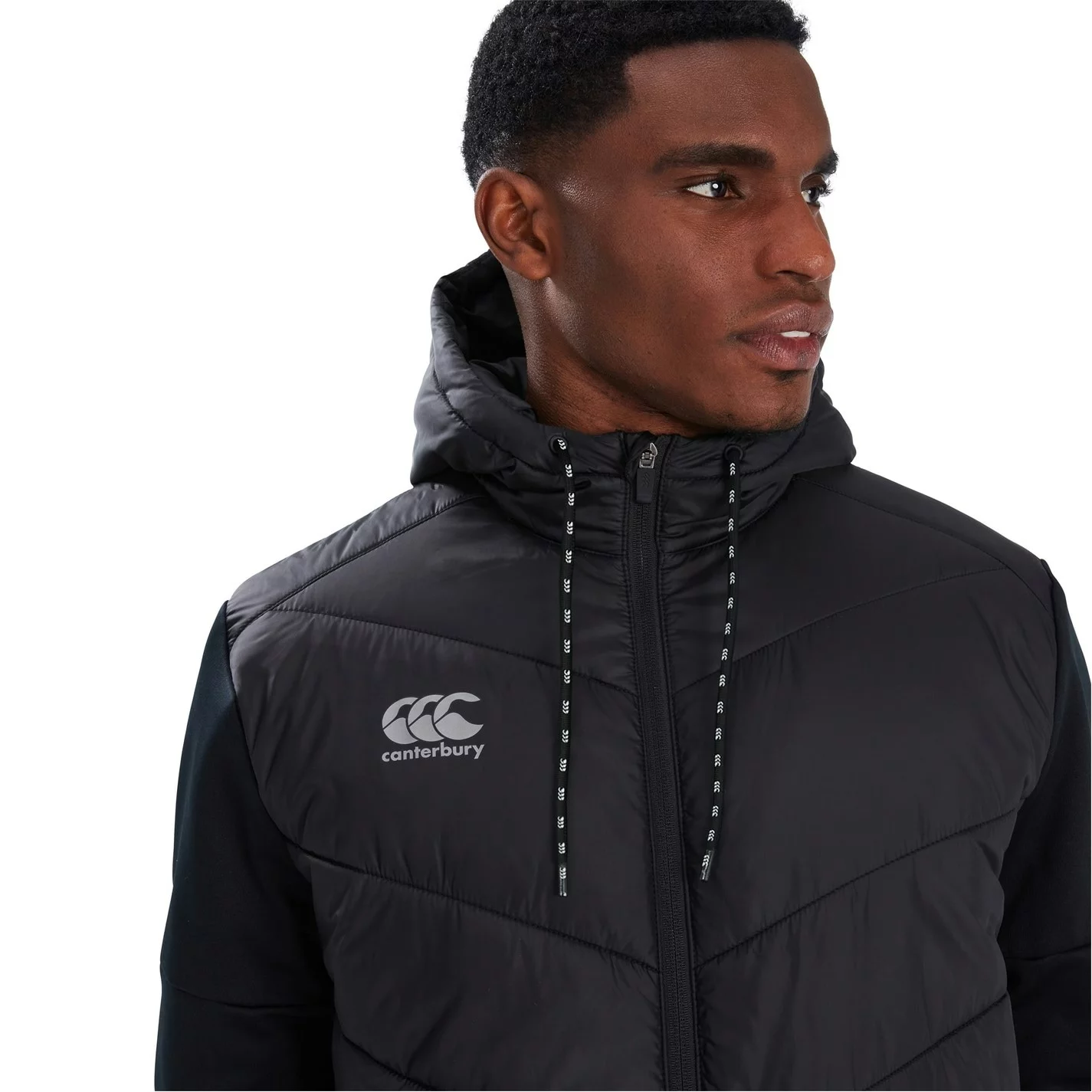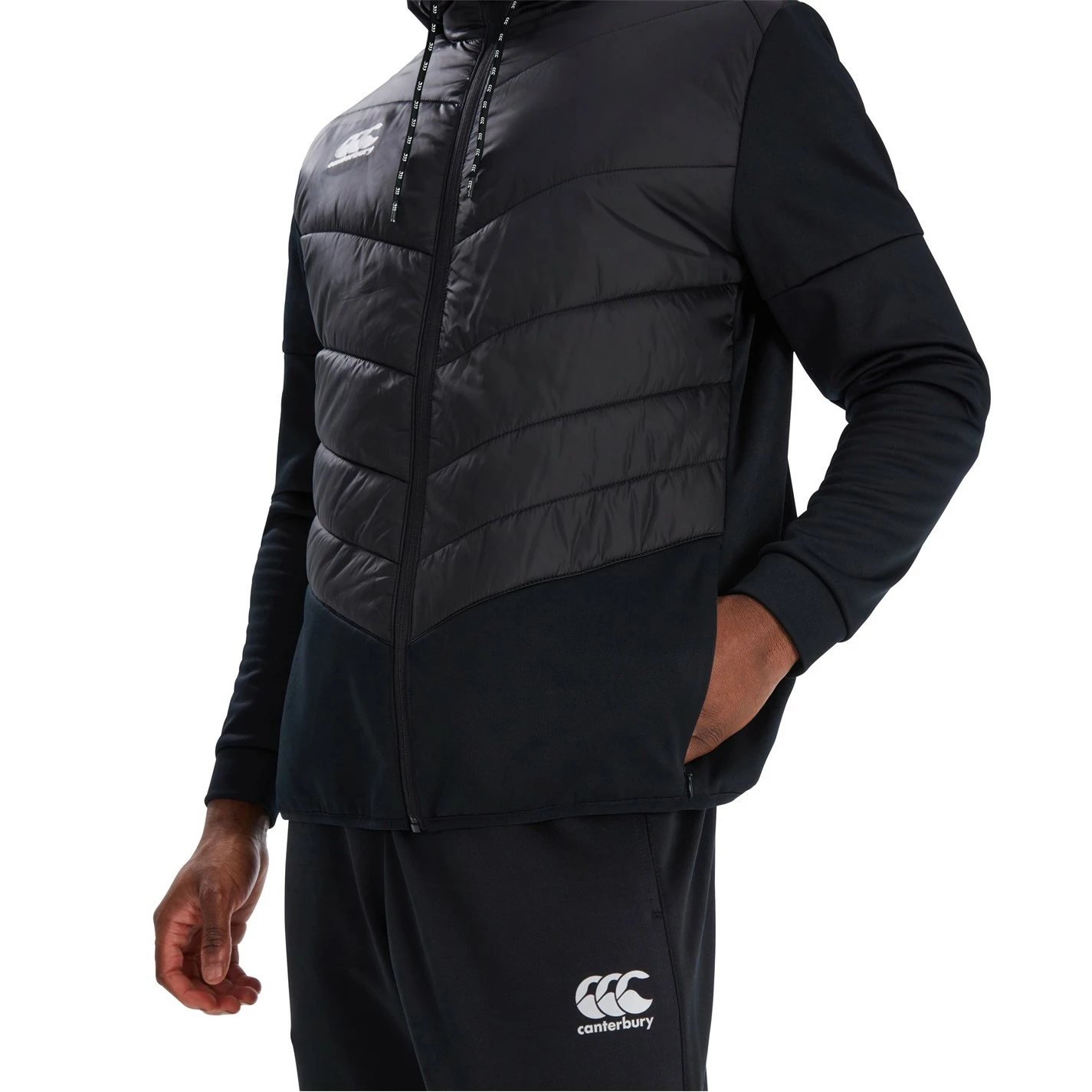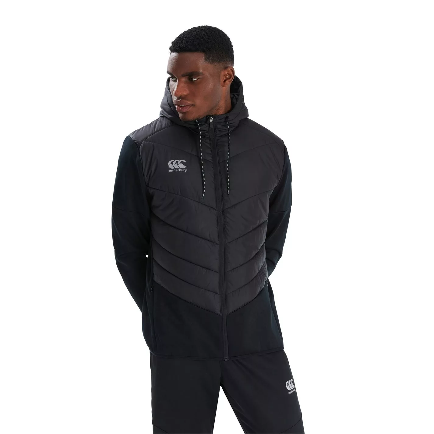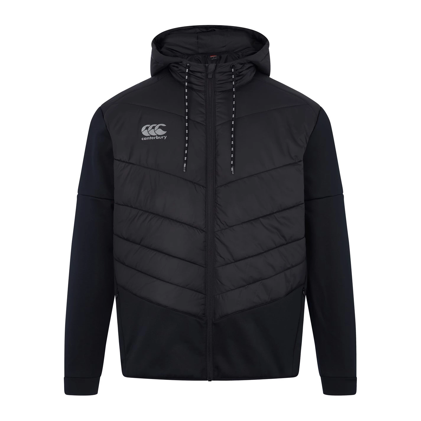 This Canterbury Hybrid Jacket is crafted with full zip fastening and long sleeves for a secure fit. It features a drawstring adjustable hood plus two hand pockets for a classic look and is a lightweight construction. This jacket is a solid colouring throughout designed with a signature logo and is complete with Canterbury branding.