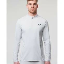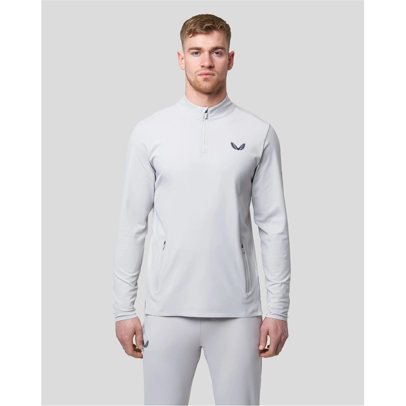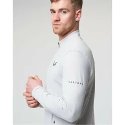 Upgrade your gymwear with the Active Tech Quarter Zip Jacket by Castore Sportswear. Crafted from a lightweight fabric for a weightless feel, the long sleeves and high rise neckline make it the perfect layering piece. With the quarter zip adding a practical touch, the solid block colour and Castore branding completes the look.