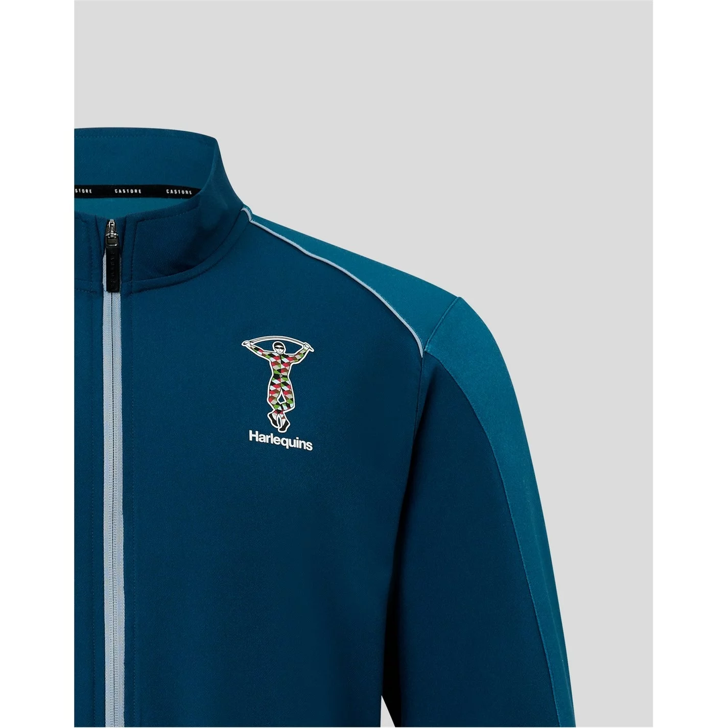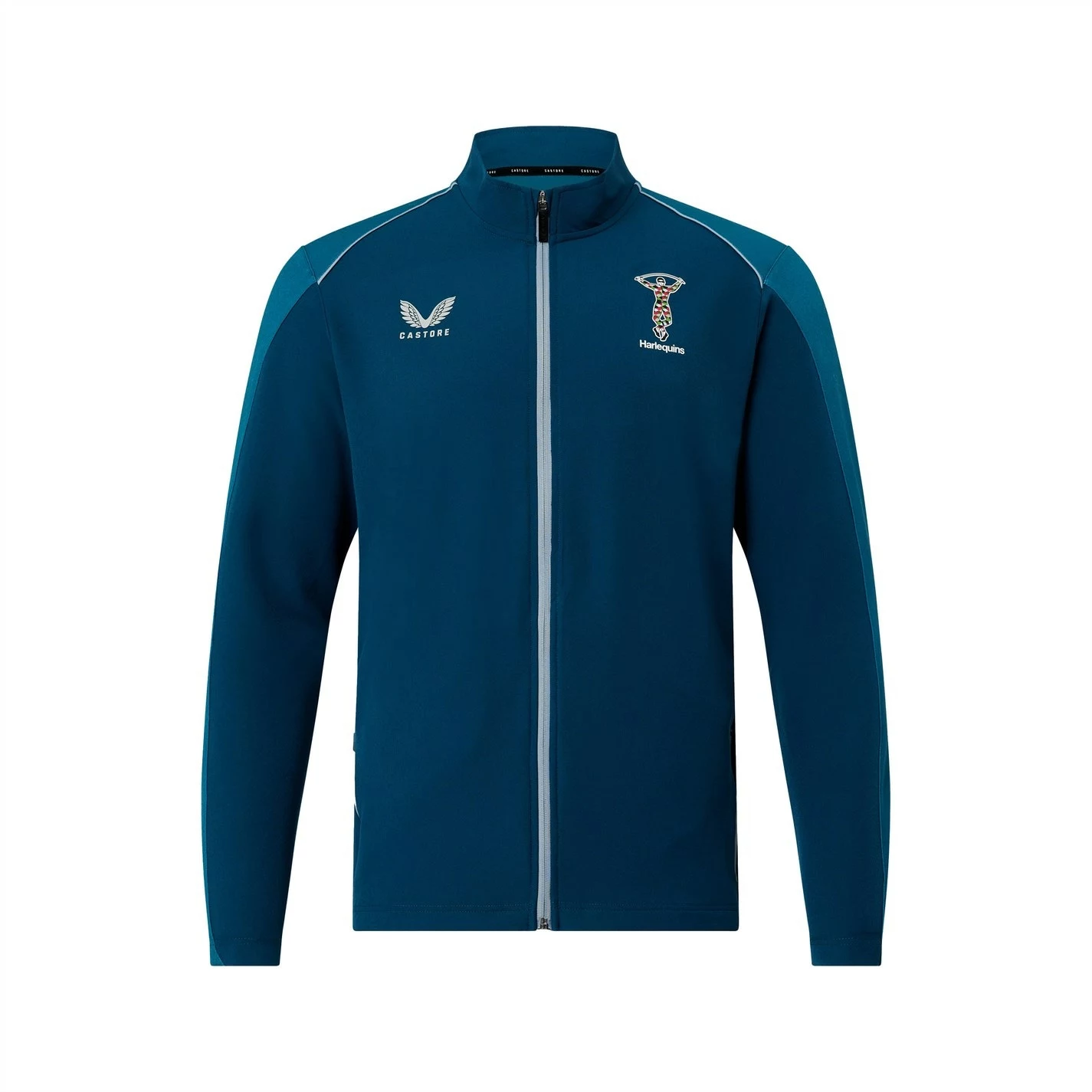 The Castore Harlequins Jacket 2022 2023 has been designed with long sleeves and a funnel neckline to help achieve a classic look. With the lightweight construction offering ease of movement and breathability, this extra layer of warmth is super practical. The jacket is complete with the team crest and Castore branding at the chest for a true sporty aesthetic.
