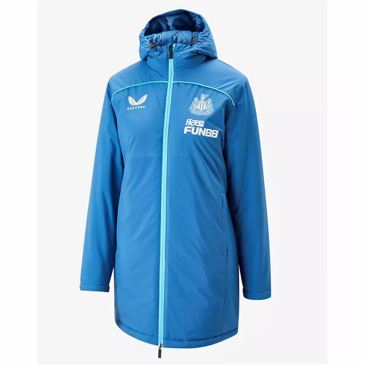 This Castore Newcastle United FC Bench Jacket is perfect for the winter months spent playing and watching football. The jacket is crafted with a full length frontal zip, two zipped side pockets and a large hood The heat insulation tech keeps heat close to the body for optimum temperature during cool conditions.