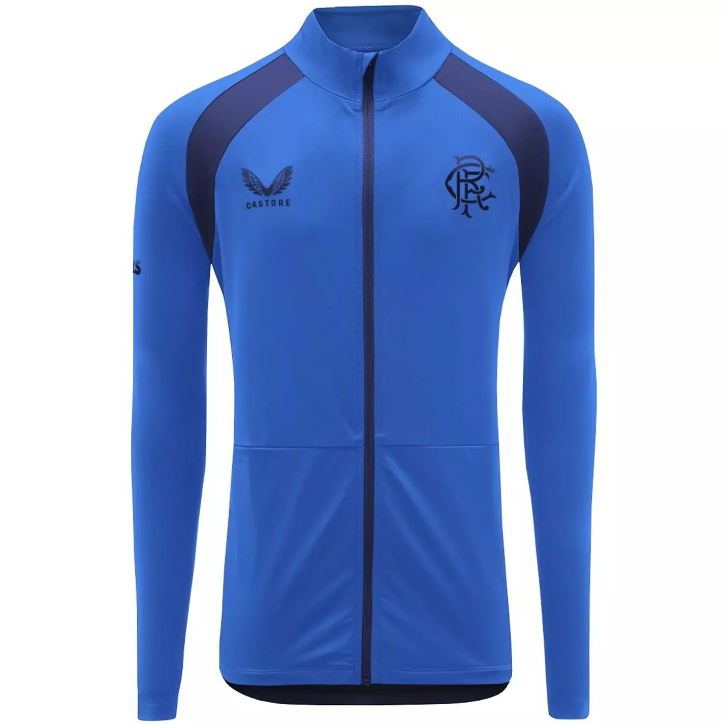 This Rangers FC Mens Golf Jacket is crafted with full zip fastening and long sleeves for a secure fit. It features comfortable ribbed trims plus two hand pockets for a classic look and is a lightweight construction. This jacket is a colour block design with a signature logo and is complete with Castore branding.