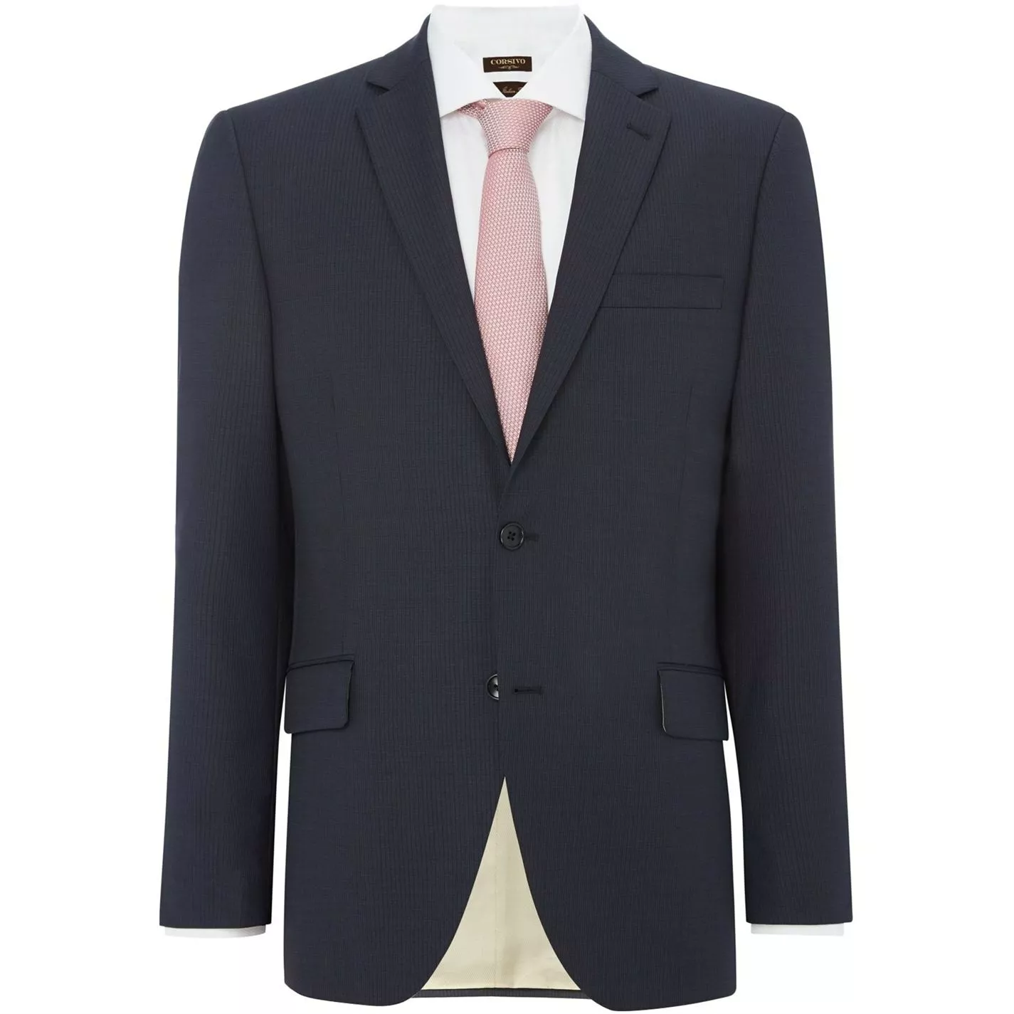 Crafted from pure Italian wool, this Corsivo textured suit jacket has a luxury and polished aesthetic. An ideal addition to your business wardrobe, this tailored-fit suit jacket is a classic staple with an updated fabric and a refined cut. The striped texture lends visual appeal to the exterior of this distinguished design.