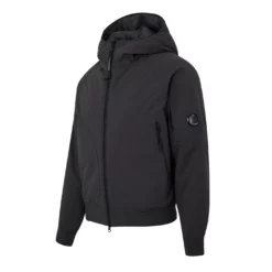 Pro-Tek Hooded Jacket in Raven Grey / Black / Golden Palm. Refresh your outerwear with the Pro-Tek Hooded Jacket from CP Company. Expertly crafted in Pro-Tek- a technical high-performance stretch polyester- this refined silhouette features a toggle adjustable hooded neckline, long sleeves, a central two way zip fastening, quilted padding for warmth and comfort, zip closed front pockets with an additional inner compartment and ribbed trims for comfort. Adorned in a sophisticated and understated block colour, the design is completed with the signature CP Company lens to the sleeve for instant brand recognition and a high end finish. External Fabric / Padding: 100% polyester. Lining: 100% nylon. Machine washable at 30 degrees – always refer to and follow washing instructions for best wear.
