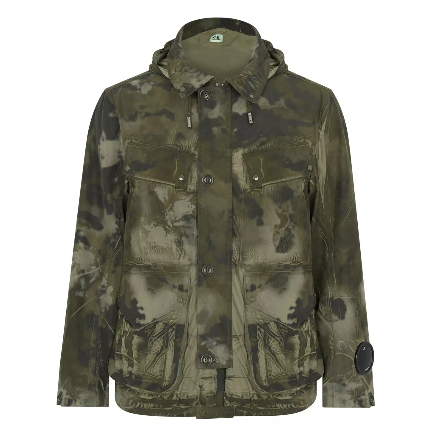 Revive your outerwear wardrobe with this Tracery Goggle Jacket from CP Company. Crafted in a soft polyester material, this jacket is cut in a regular fit and features an adjustable drawstring hood, a central two way zip closure with button fastening, long sleeves, adjustable press stud cuffs, four press stud flap pockets and an inside pocket for your essentials. The look is finished with the brand’s signature lens goggle to the sleeve and hood for brand recognition. Machine washable at 30 degrees.