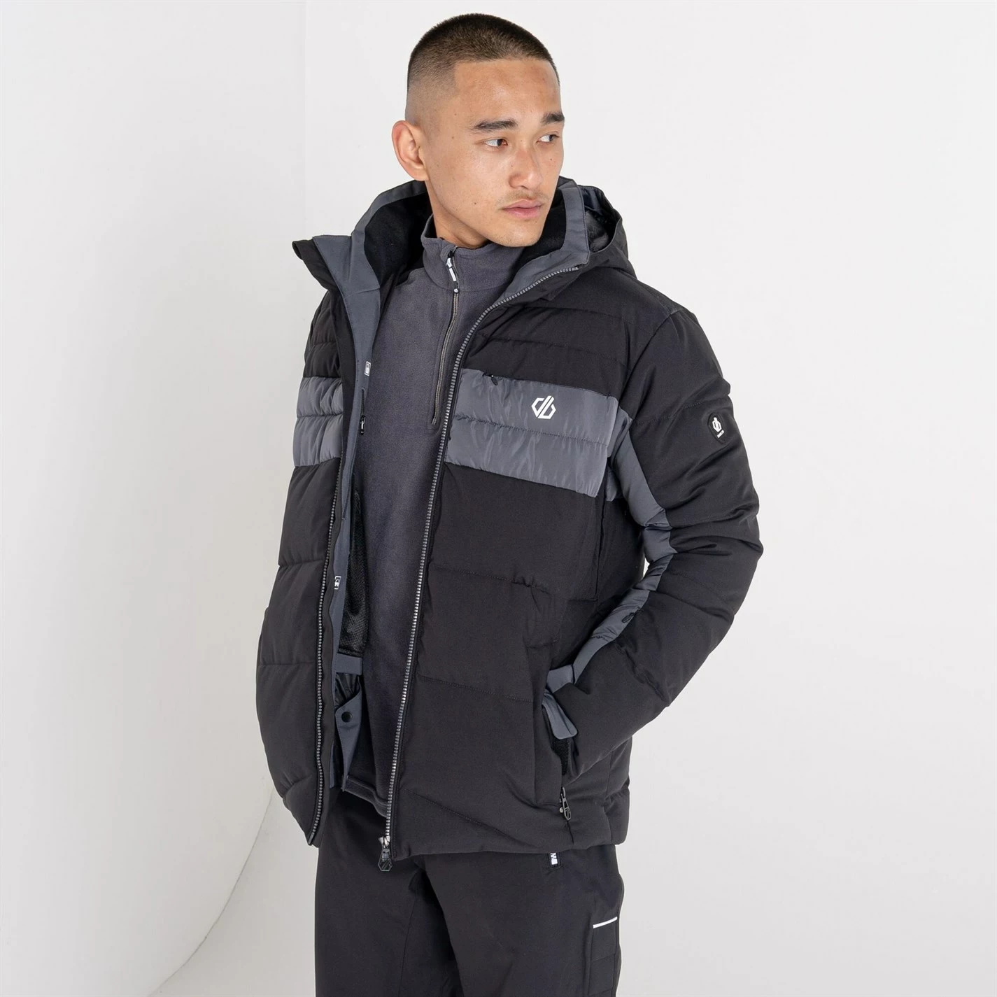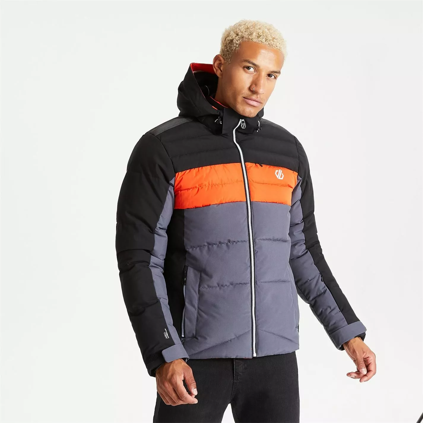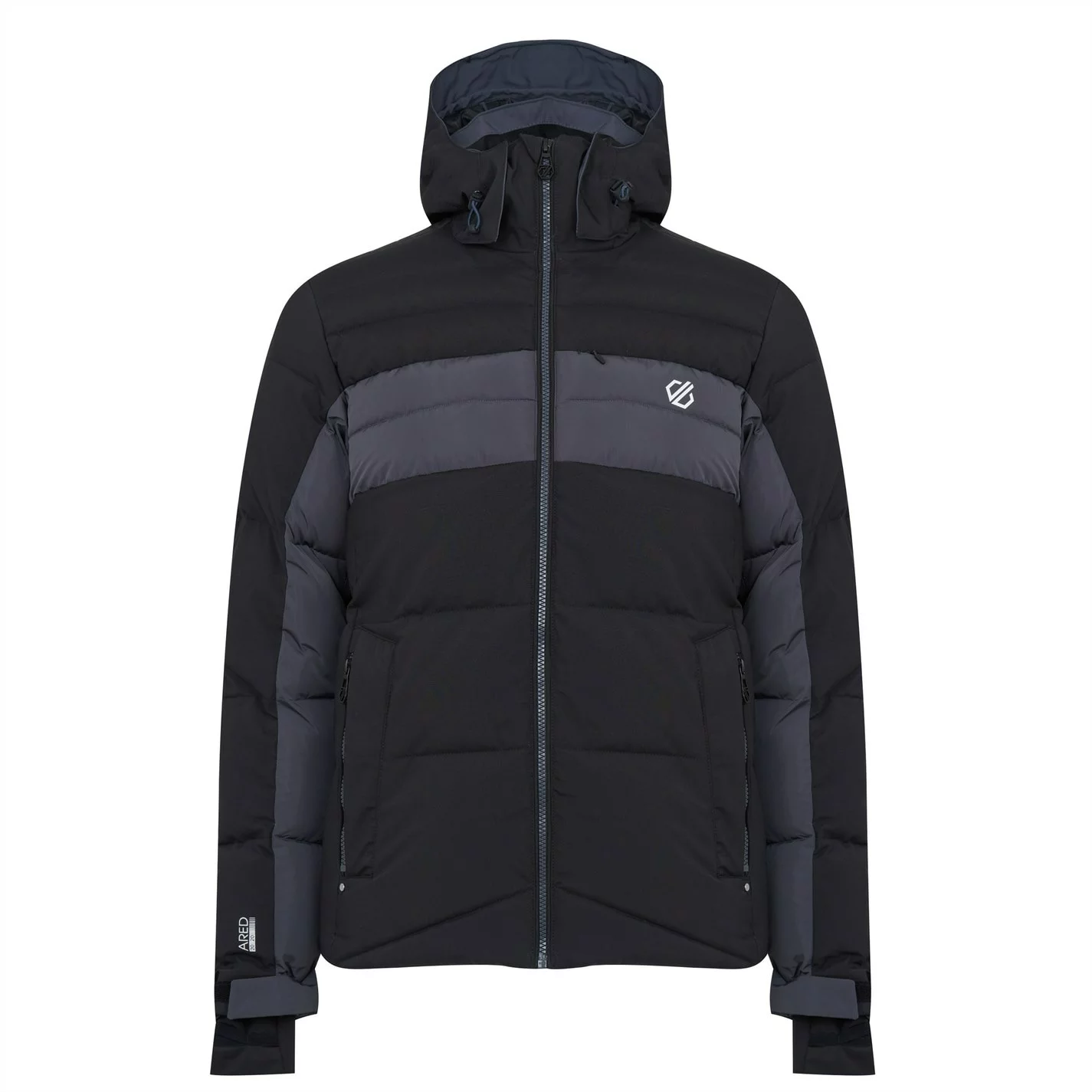 The Jenson Button Edit Denote Waterproof Ski Jacket. Made of recycled, highly waterproof breathable ARED 20/20 fabric and quilted with high warmth, low bulk insulation. Featuring a detachable snowskirt with gel grip and taped seams to keep the weather out. Soft fleece lining to pack in the heat on the mountain. Full protection on your downhill runs.
