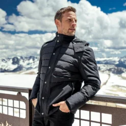 The Jenson Button Edit Endless Jacket. Recycled ARED 20/20 performance waterproof and breathable fabric protects you from rain and snowfall but keeps moisture at bay. With four-way stretch for full mountain mobility. Baffle lined with knitted rib to collar and cuffs seal in the warmth. Featuring a storm flap and hood with high collar and snap fastening for optimal protection. Complete with zipped lower pockets. Wear for mountain or town